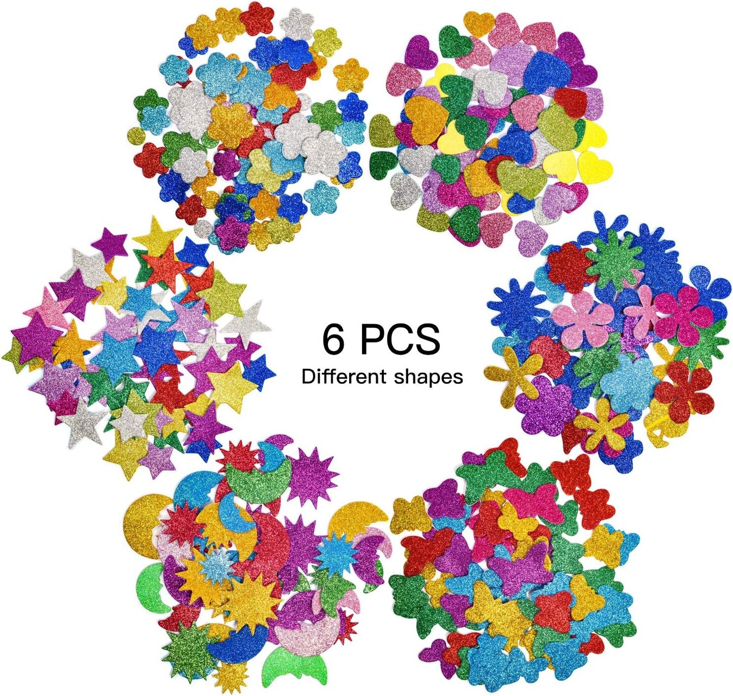 [6 Pack] Glitter Foam Letter Stickers Foam Stars Heart Self