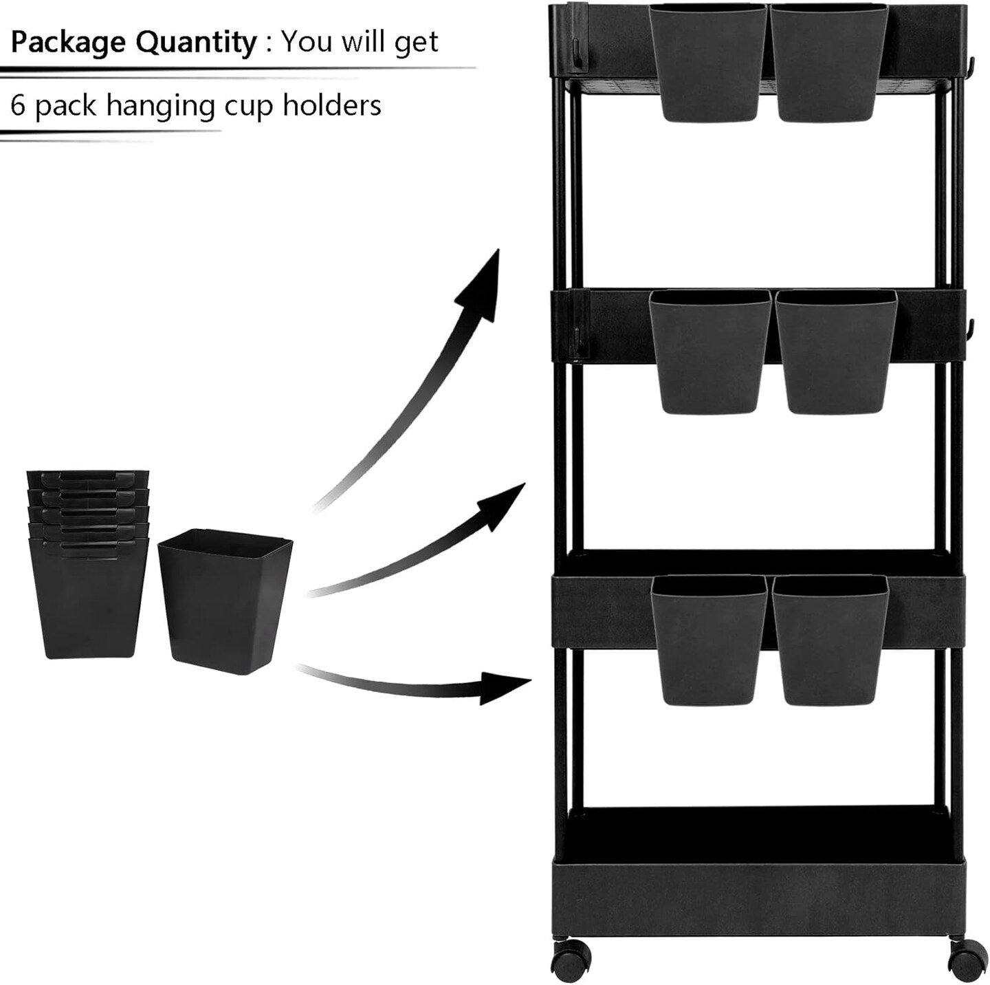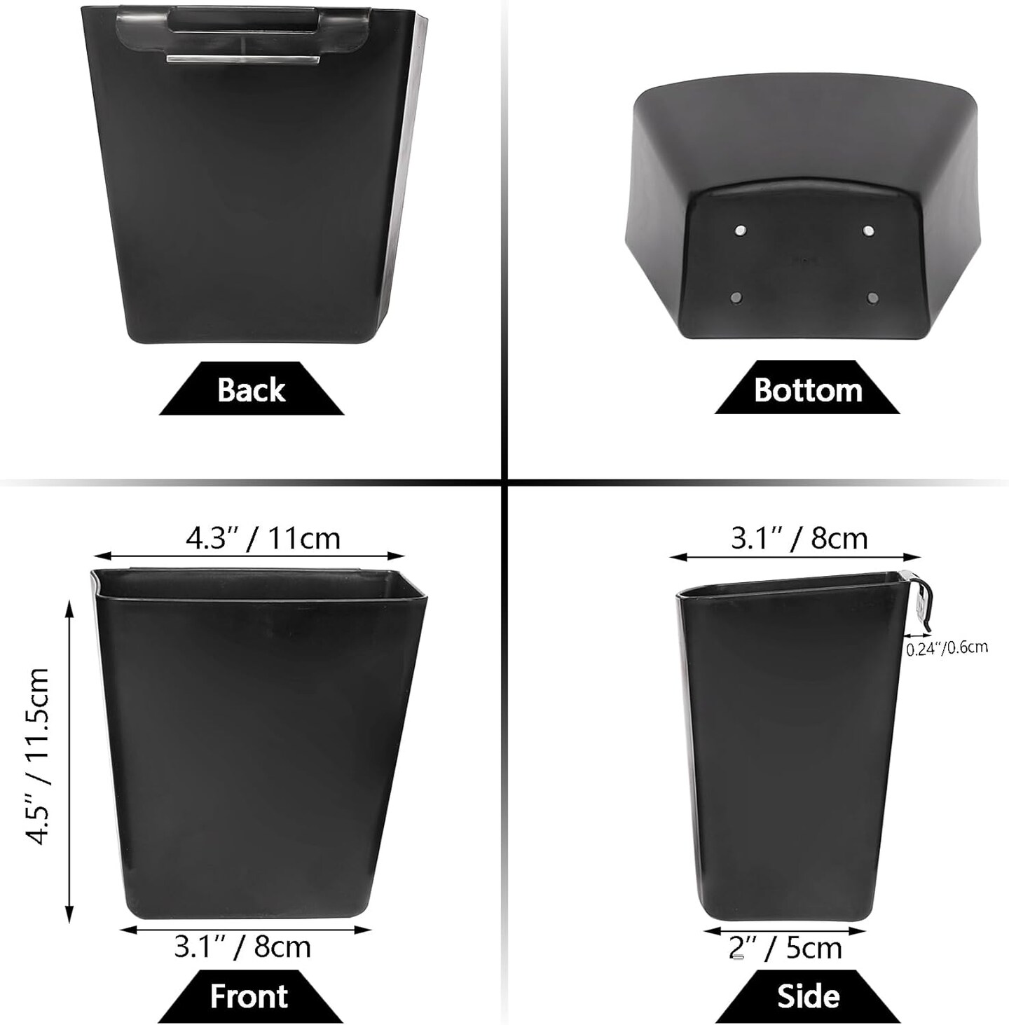 6 Pack Hanging Storage Bins (Black) 4.3"L x 2.4"W x 4.5"H