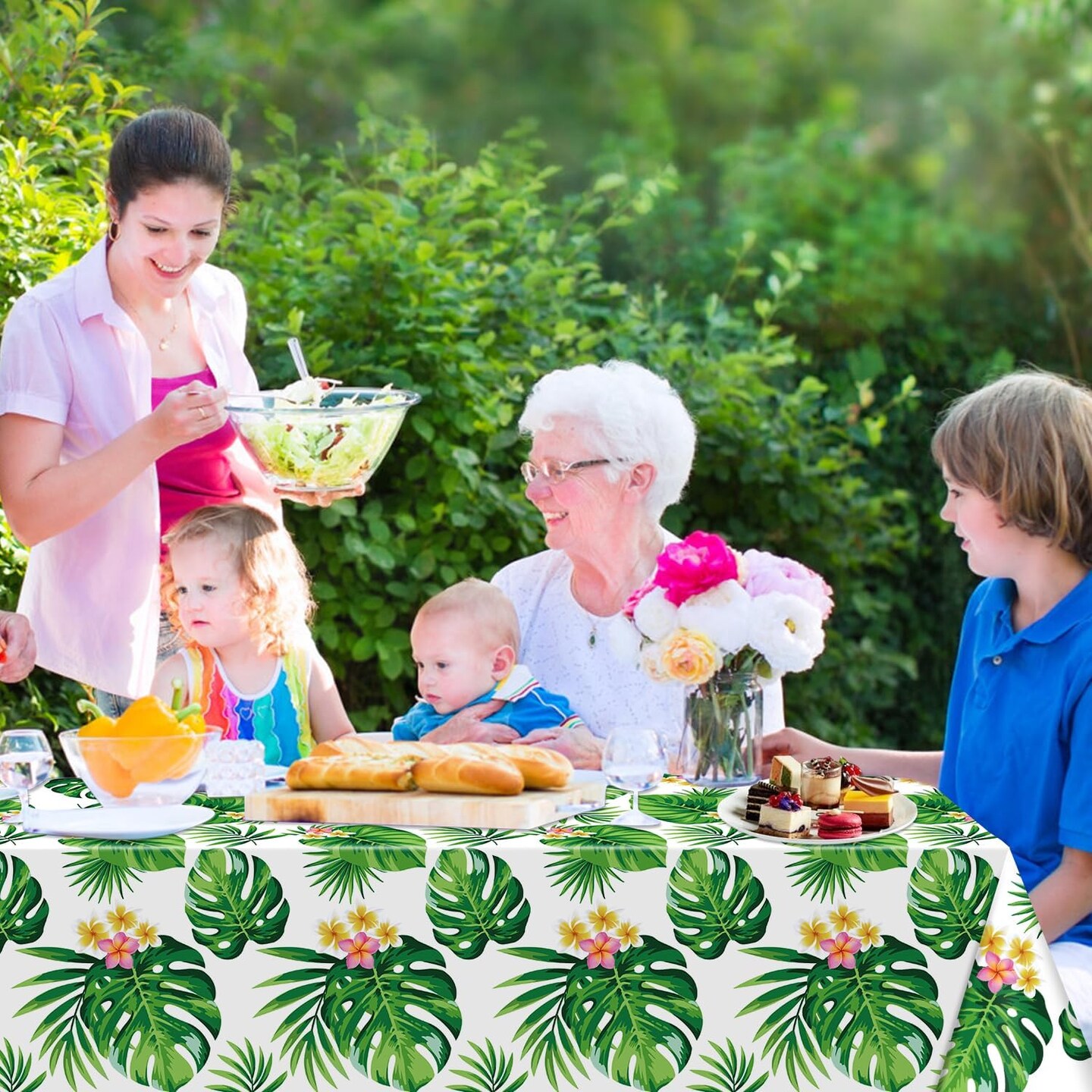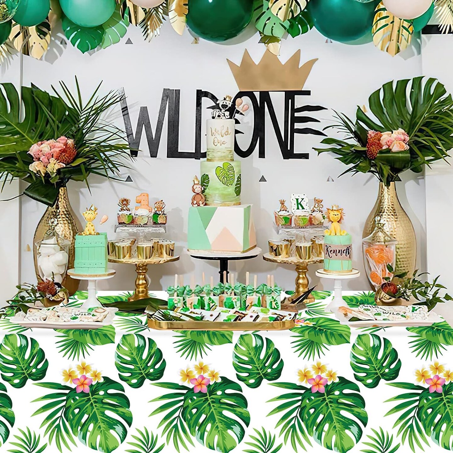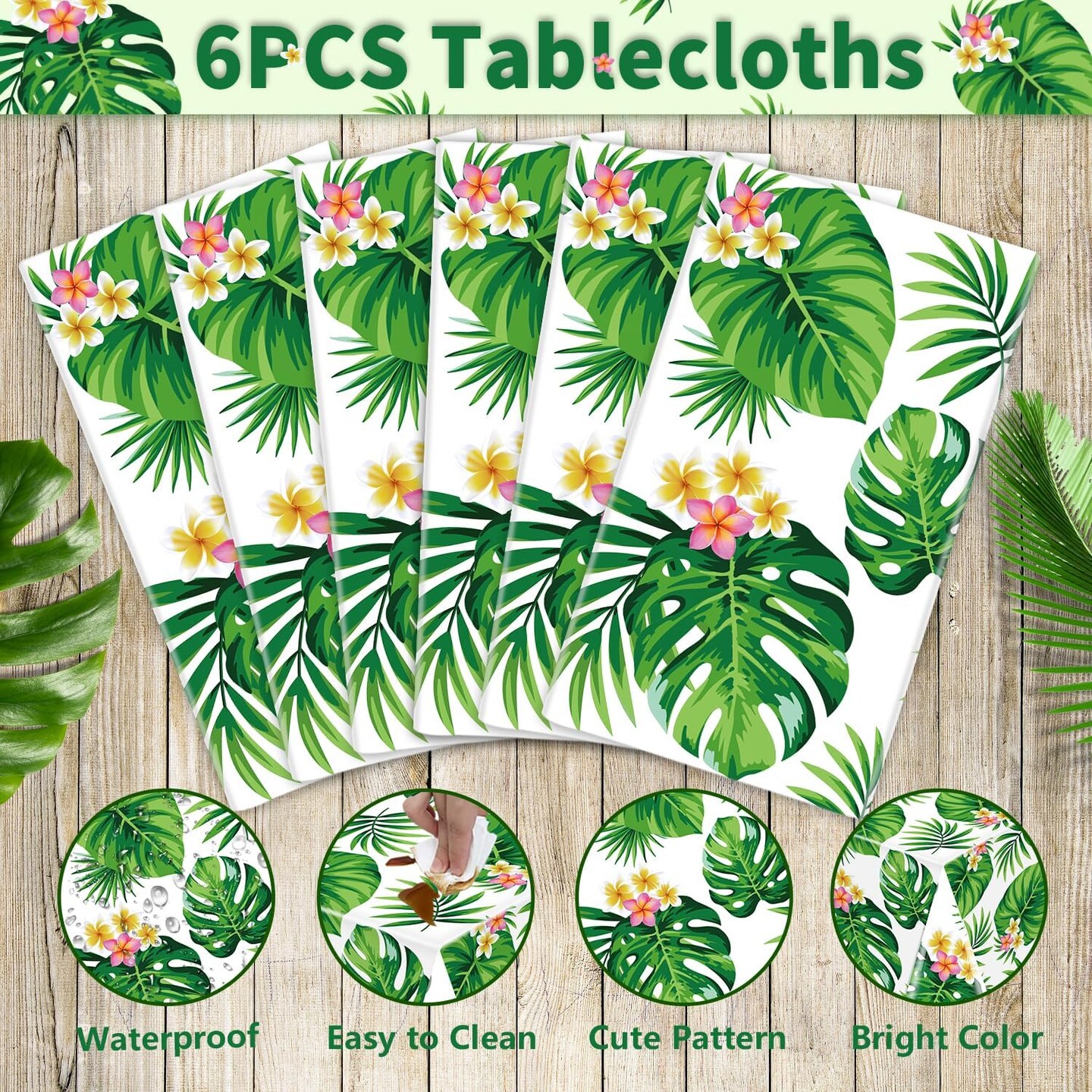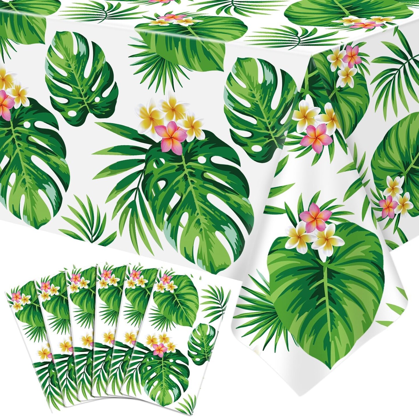 6 Pack Hawaiian Luau Tablecloths Tropical Palm Leaves Table Cloth Hawaiian Luau Table Cover Palm Leaves Table Cloth Baby Birthday Birthday Party Summer Pool Tropical Party Decorations 86 x 51 in