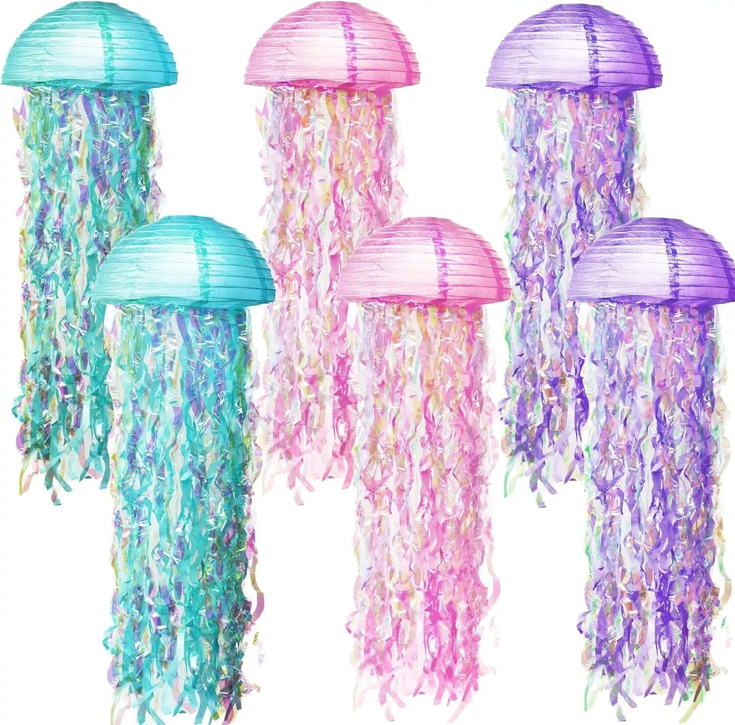 6 Pack Jellyfish Paper Lanterns Versatile Hanging Lantern Decor with Shiny Strip