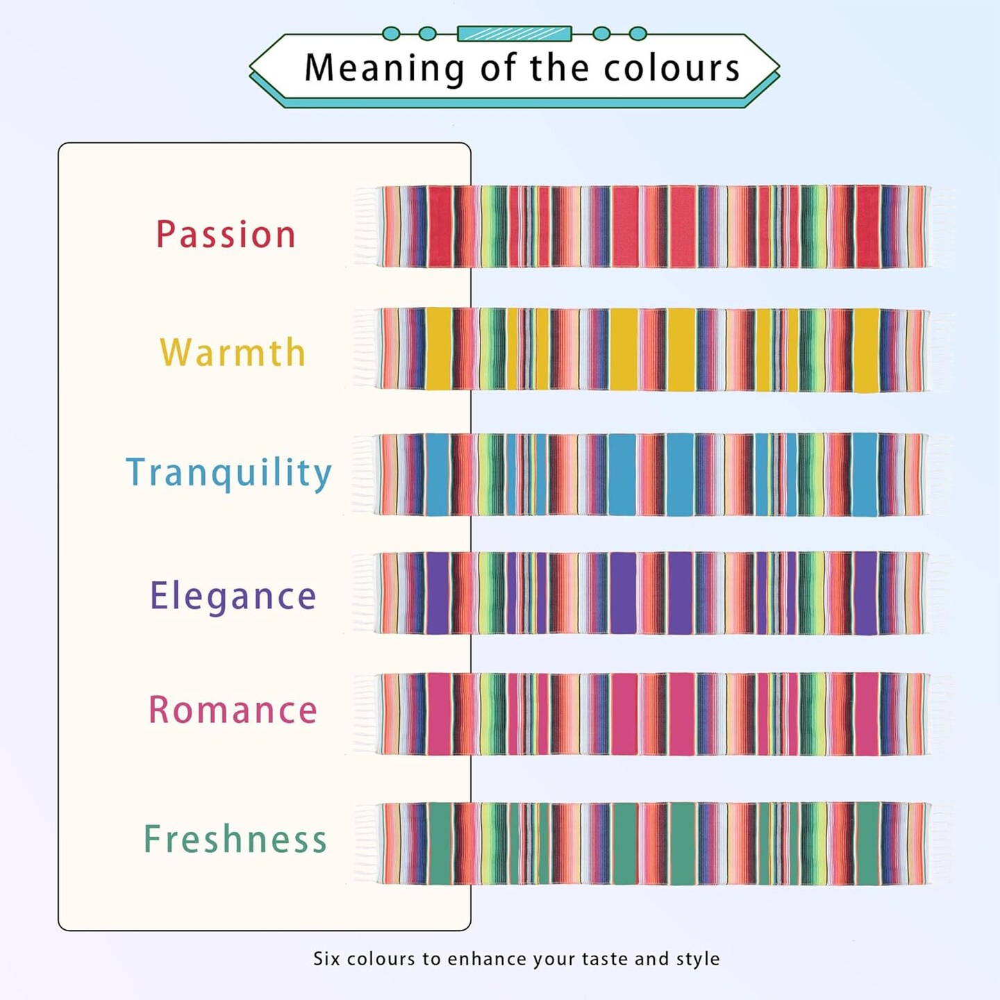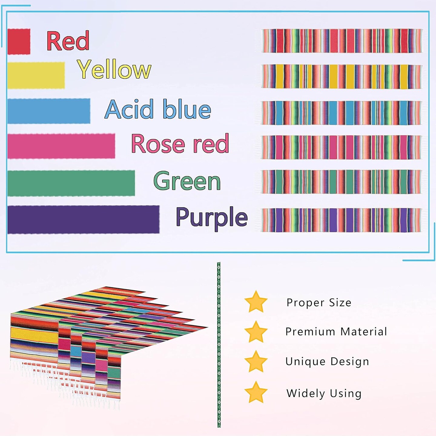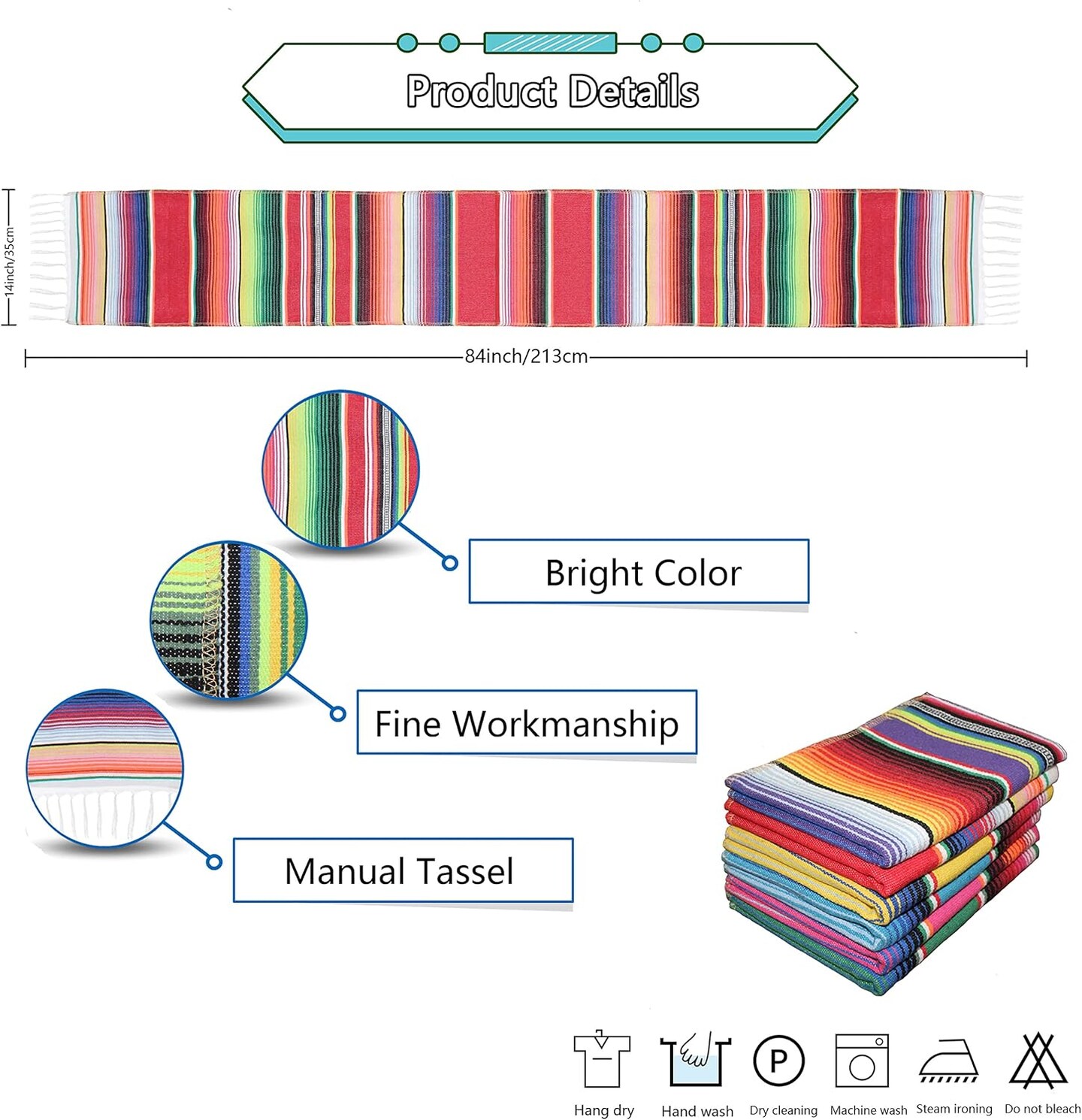 6 Pack Mexican Table Runners 14” x 84” Rainbow Colors Large Boho Mexican Theme Party Decoration for Cinco de Mayo Fiesta Party 6 Serape Table Runner (14” x 84”)