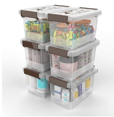 6 Pack Storage Organiser Bins with Latching Handle and Lids, 3.5 Quart Clear Storage Latch Box