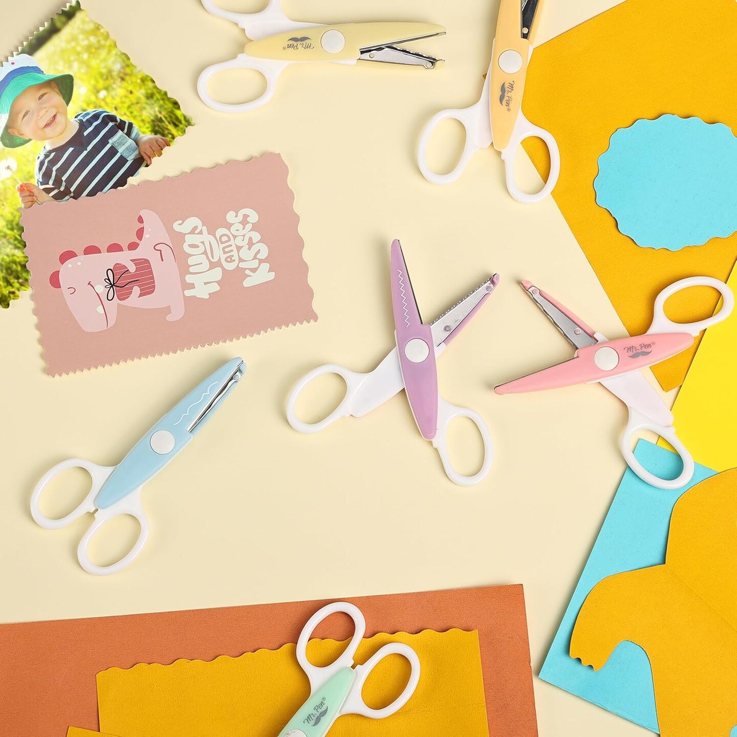 6 Pack, White & Pastel Color, Craft Scissors, Zig Zag Scissors, Decorative Scissors, Scrapbooking Scissors, Fancy Scissors for Crafting, Pattern Scissors