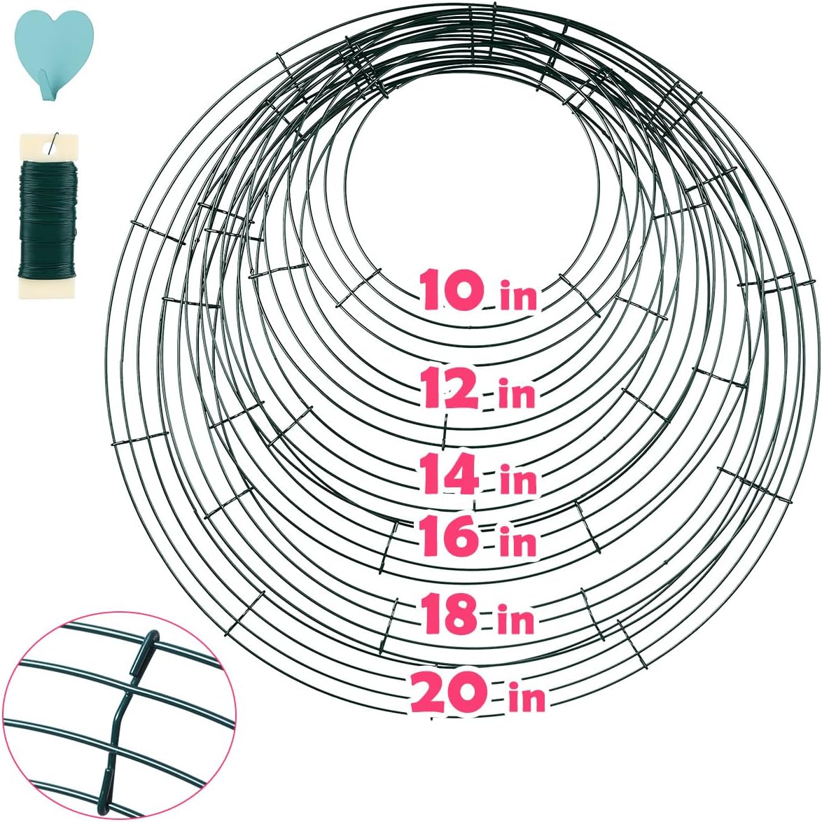 6 Pack Wire Wreath Frame 10 Inches Metal Wreath Frame Wreath Form Wreath Hoop Wreath Ring with 6 Pcs Adhesive Hooks and 38 Yard 22 Gauge Paddle Wire for Crafts