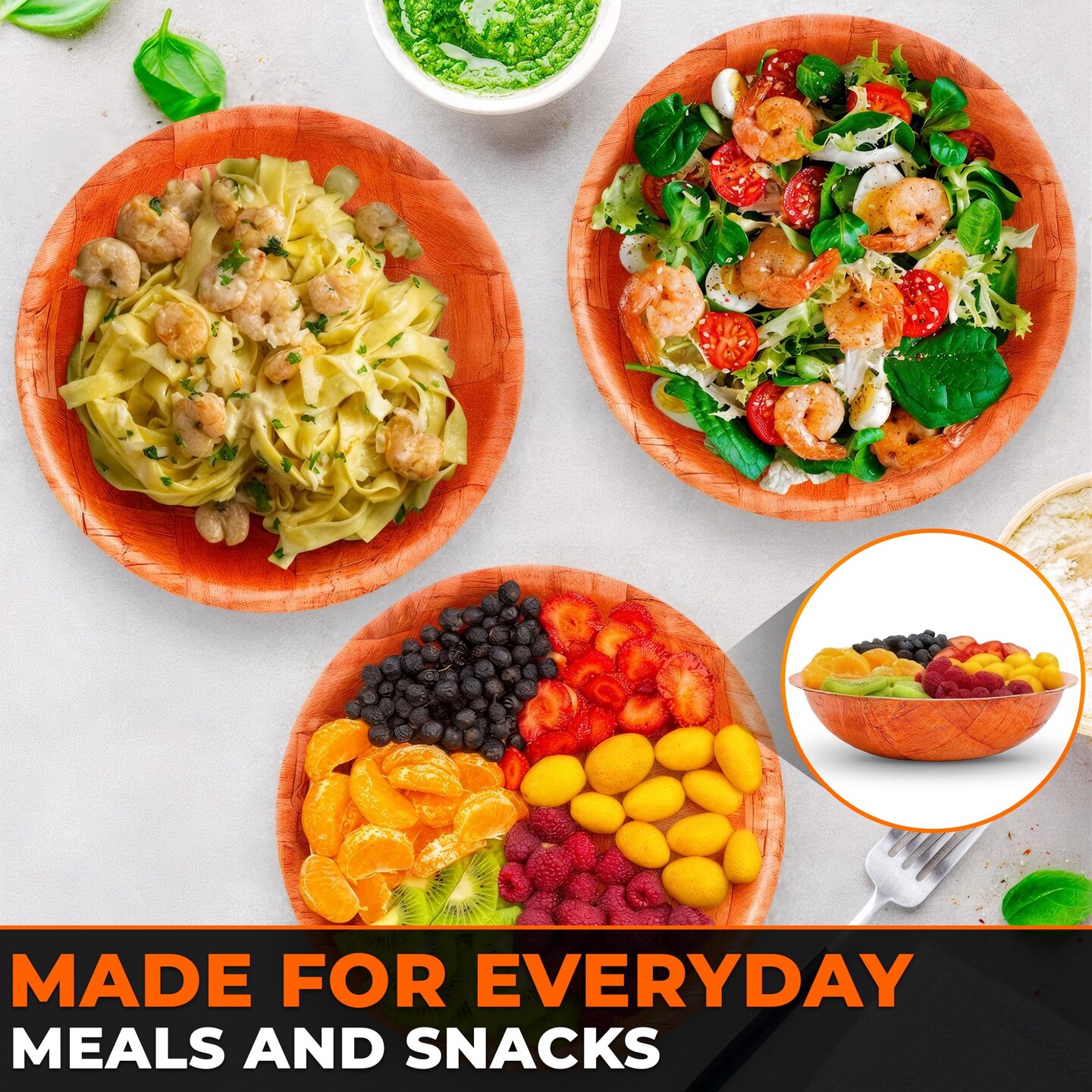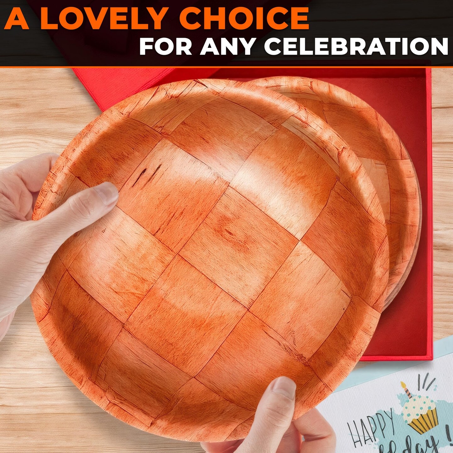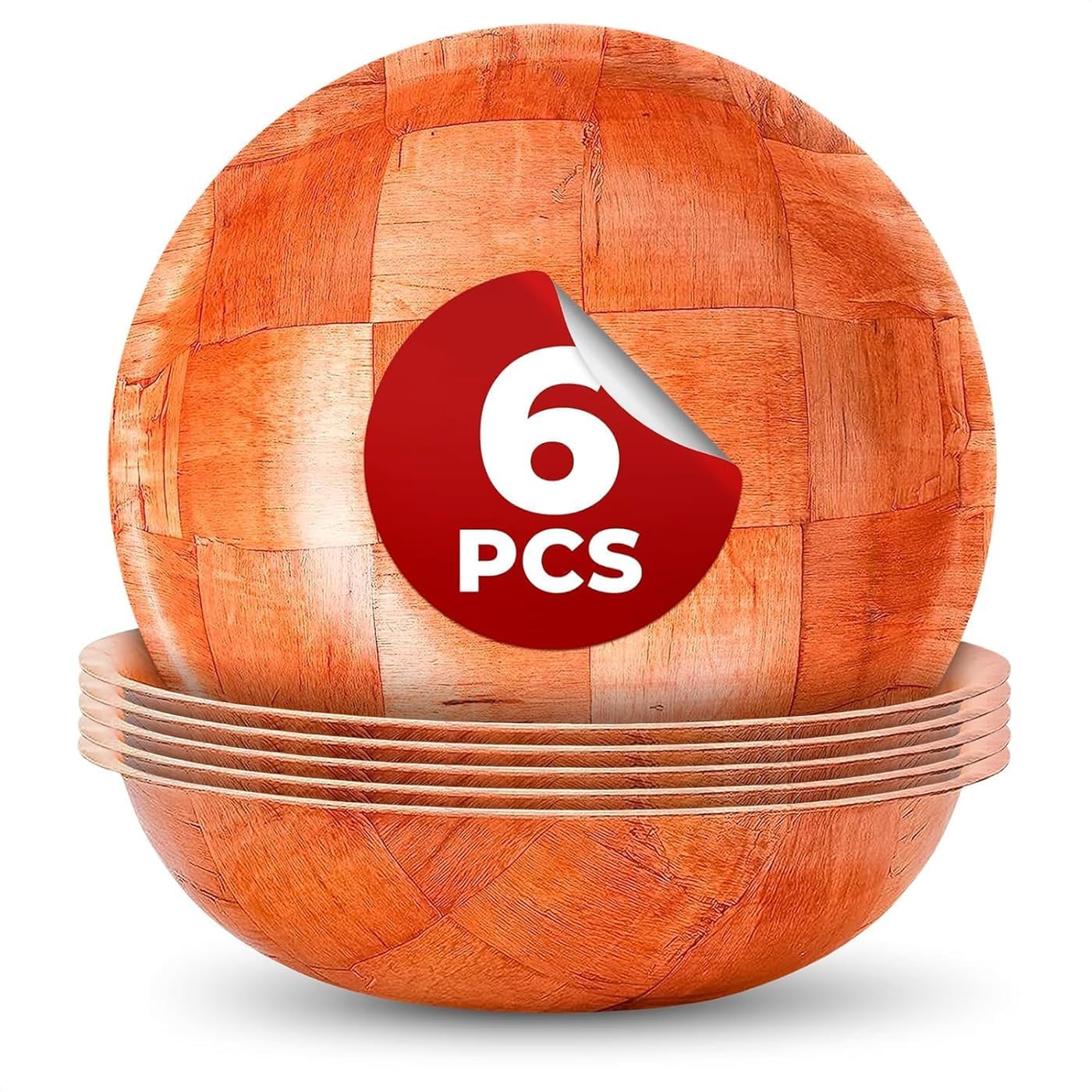 6 Pack Wooden Salad Bowls – 7.9"x2" Serving Bowls for Pasta, Fruit & Snacks, Lightweight Wood with Smooth Finish, Easy to Clean & Stack – Great for Home, Parties & Lovely Valentines Gifts for Hosts