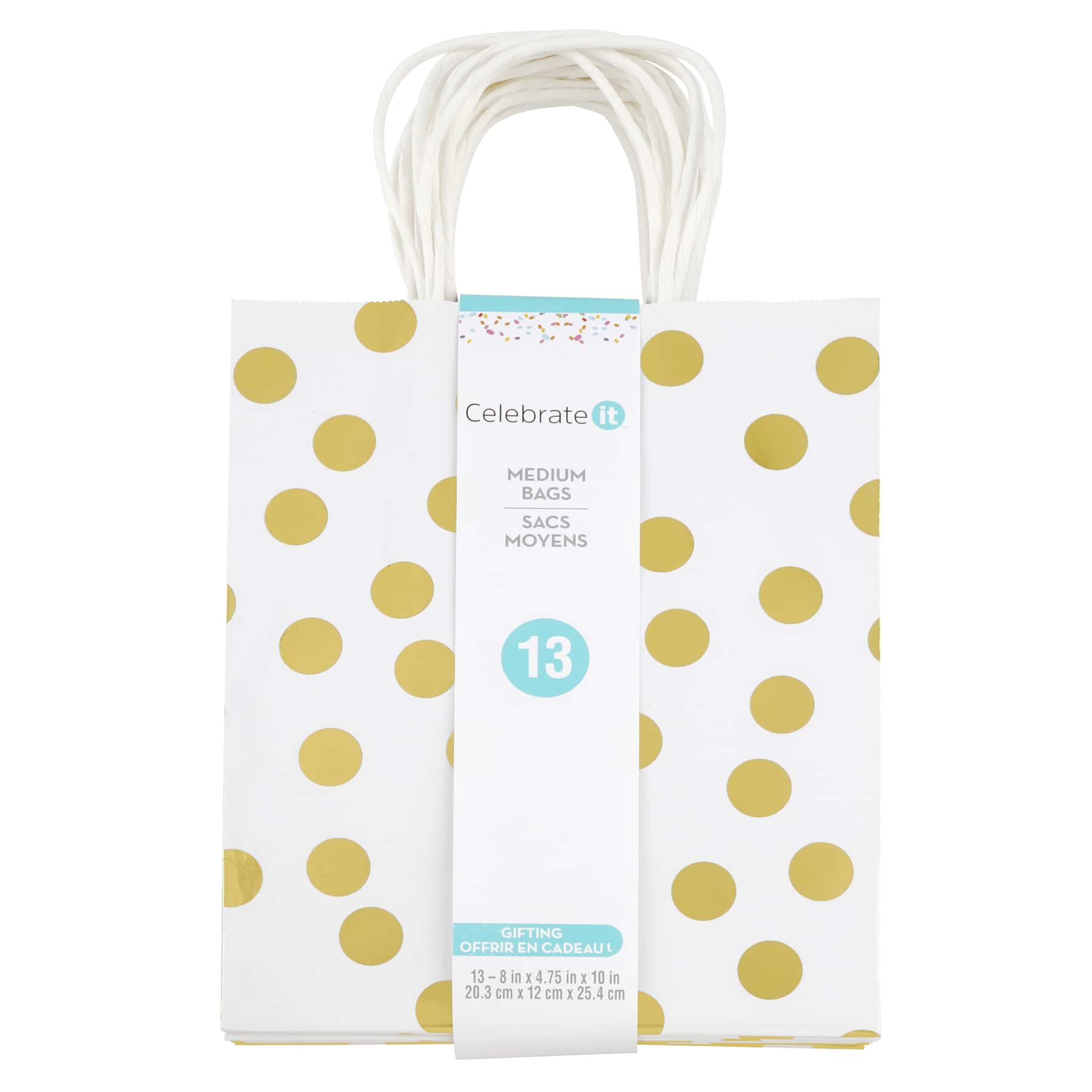 6 Packs: 13 ct. (78 total) Medium Gold & White Polka Dot Gift Bag Value Pack by Celebrate It™