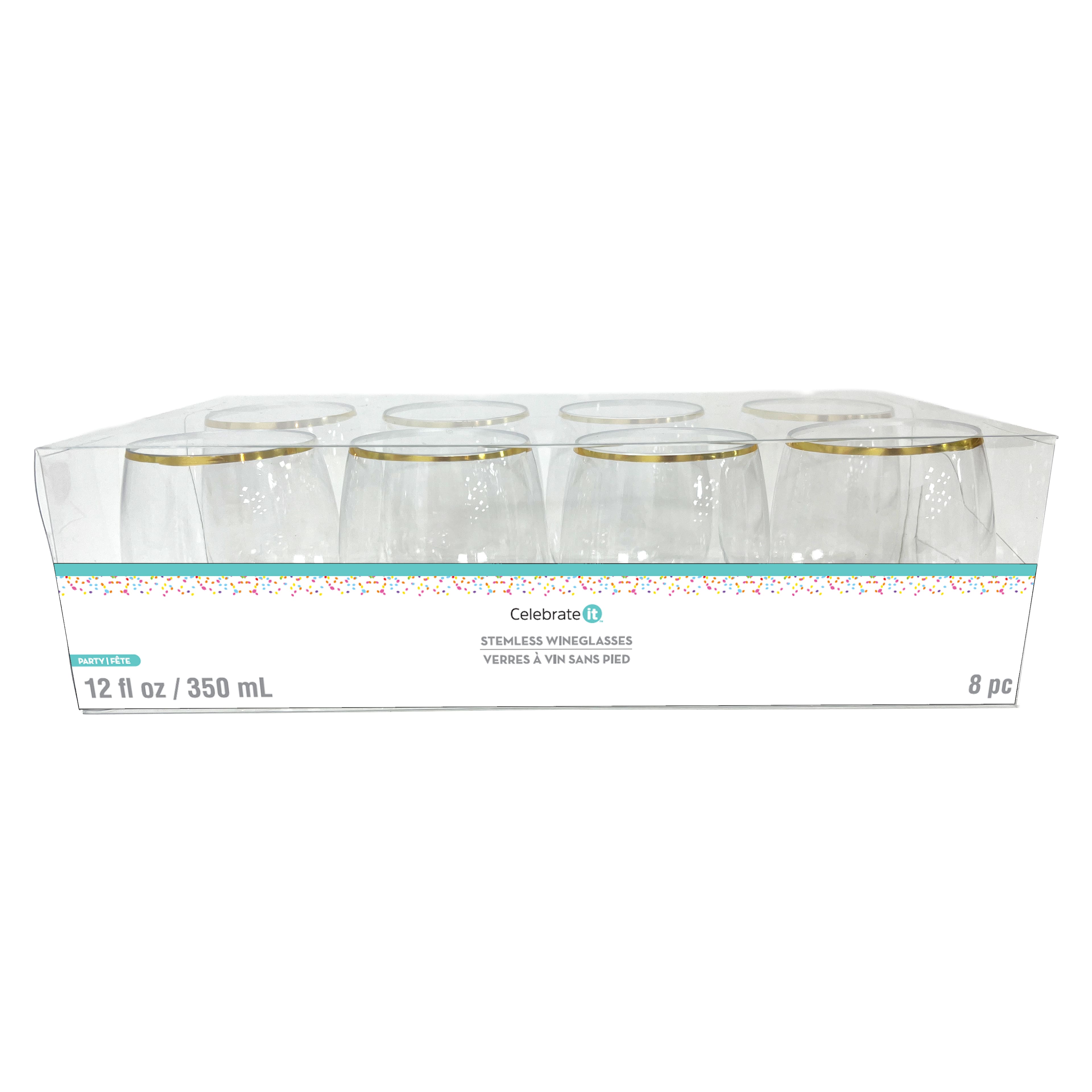 6 Packs: 8 ct. (48 total) Gold Rim Stemless Wine Glasses by Celebrate It™
