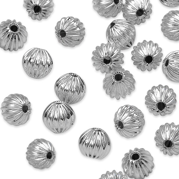 6 Packs of 8mm x 8mm Round Pleated Metal Beads 8 Inch Strand