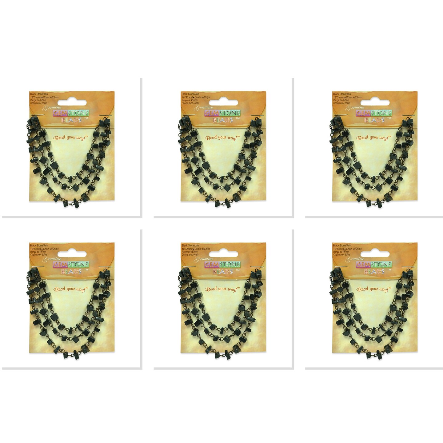 6 Packs of Black Stone Chain with Chips - 18" Strand