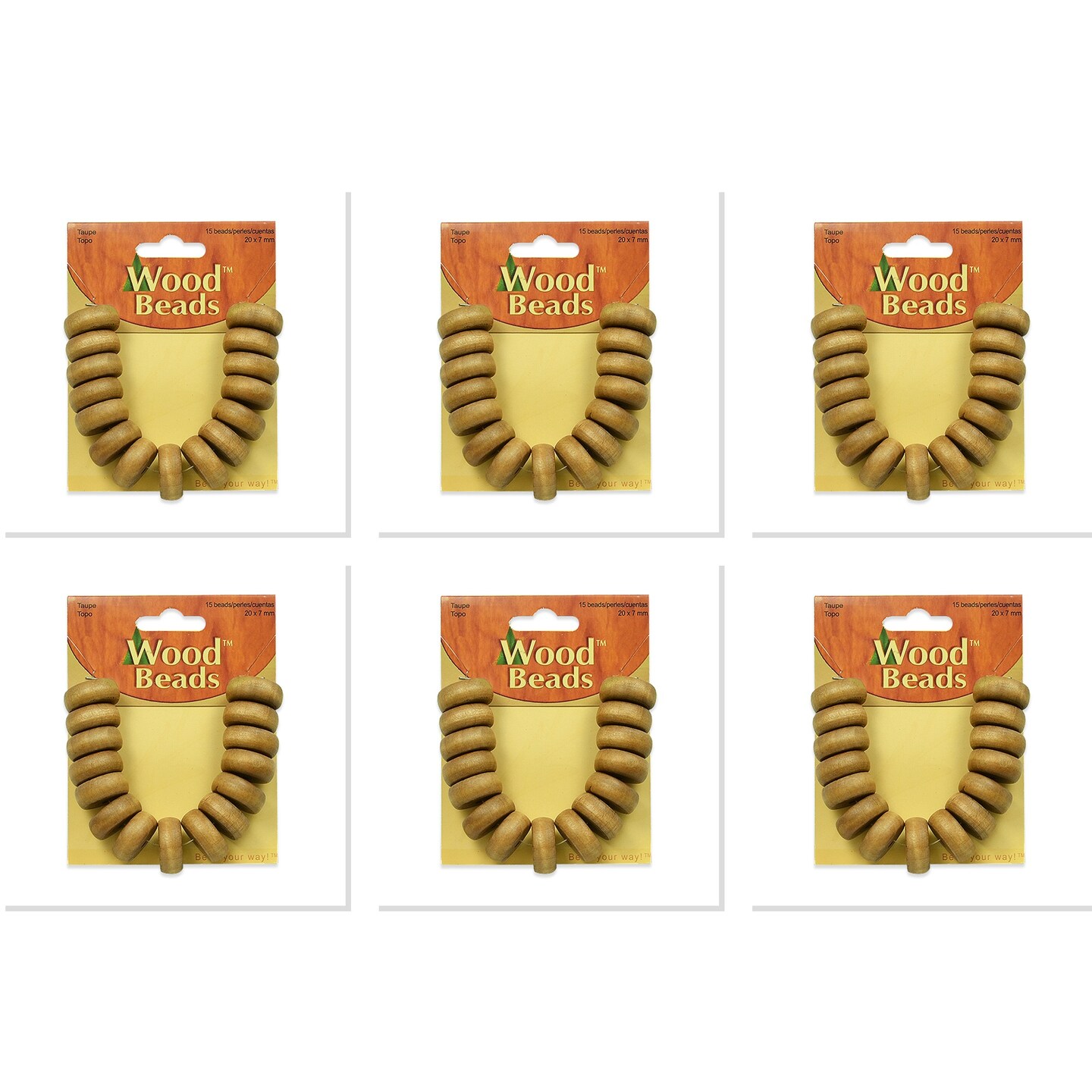 6 Packs of Button Wood Beads - Taupe - 20mm x 7mm - 15 pcs.