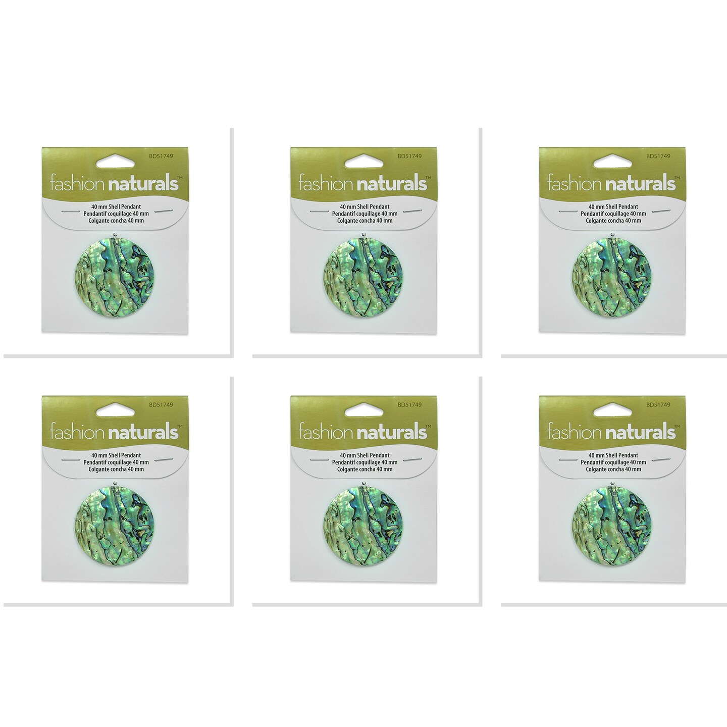 6 Packs of Paua Round Pendant - Green Multi - 40mm