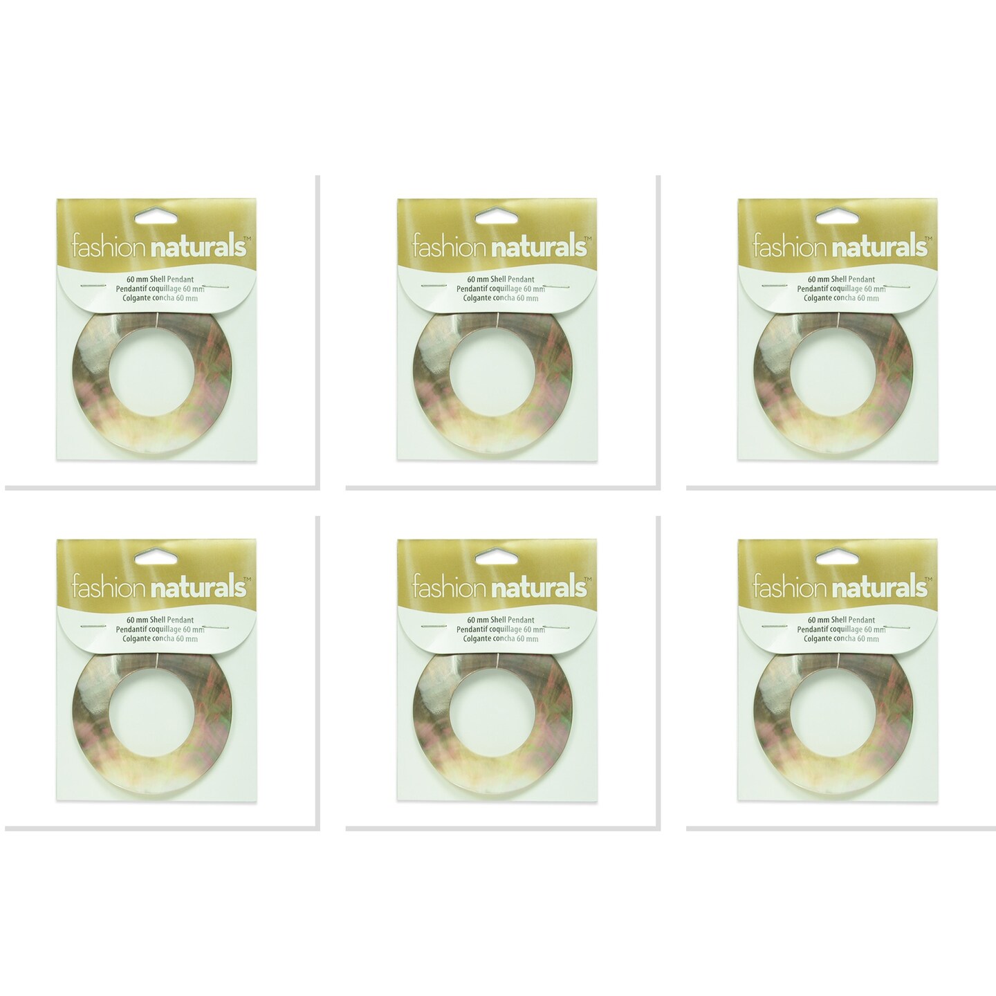 6 Packs of Ring Shell Pendant - 60mm - Natural