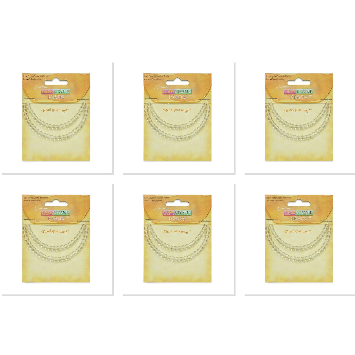 6 Packs of Rock Crystal Beads - 4mm - 45 pcs.