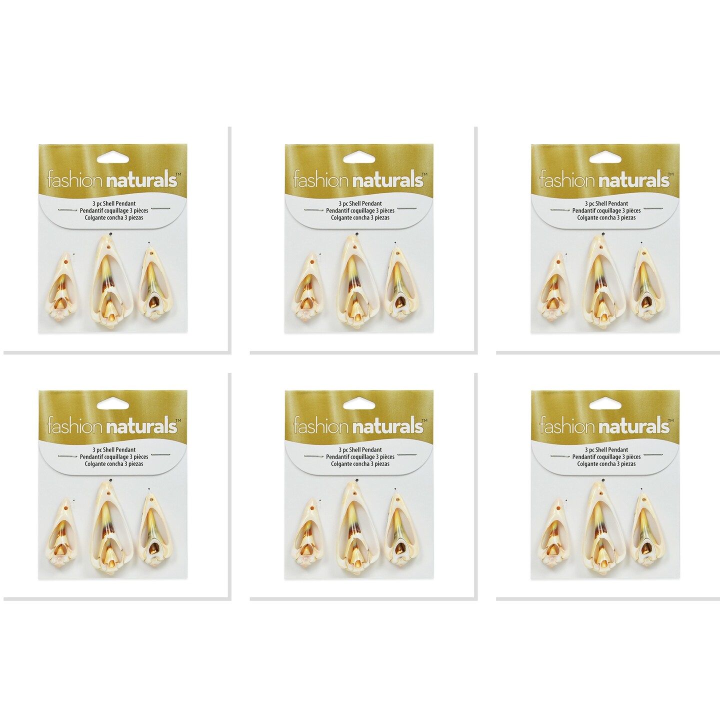 6 Packs of Sliced Shell Pendants - Ivory Multi - 3 Pc Pack