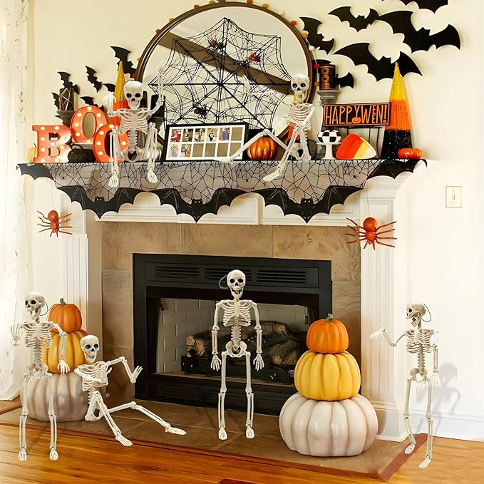 6 Packs Posable Halloween Skeleton, 16" Full Body Skeleton Decor with Movable Joints, Skeletons Halloween Decorations for Indoor Party Favor