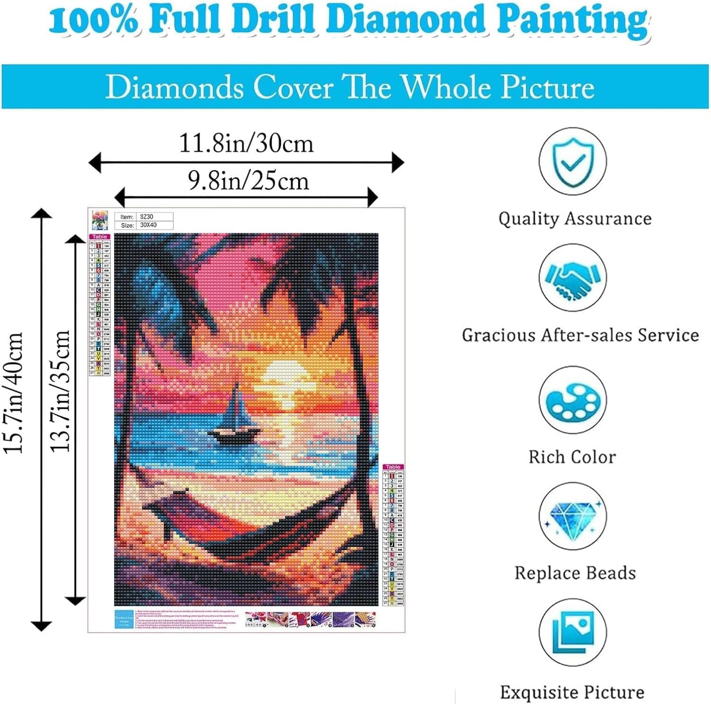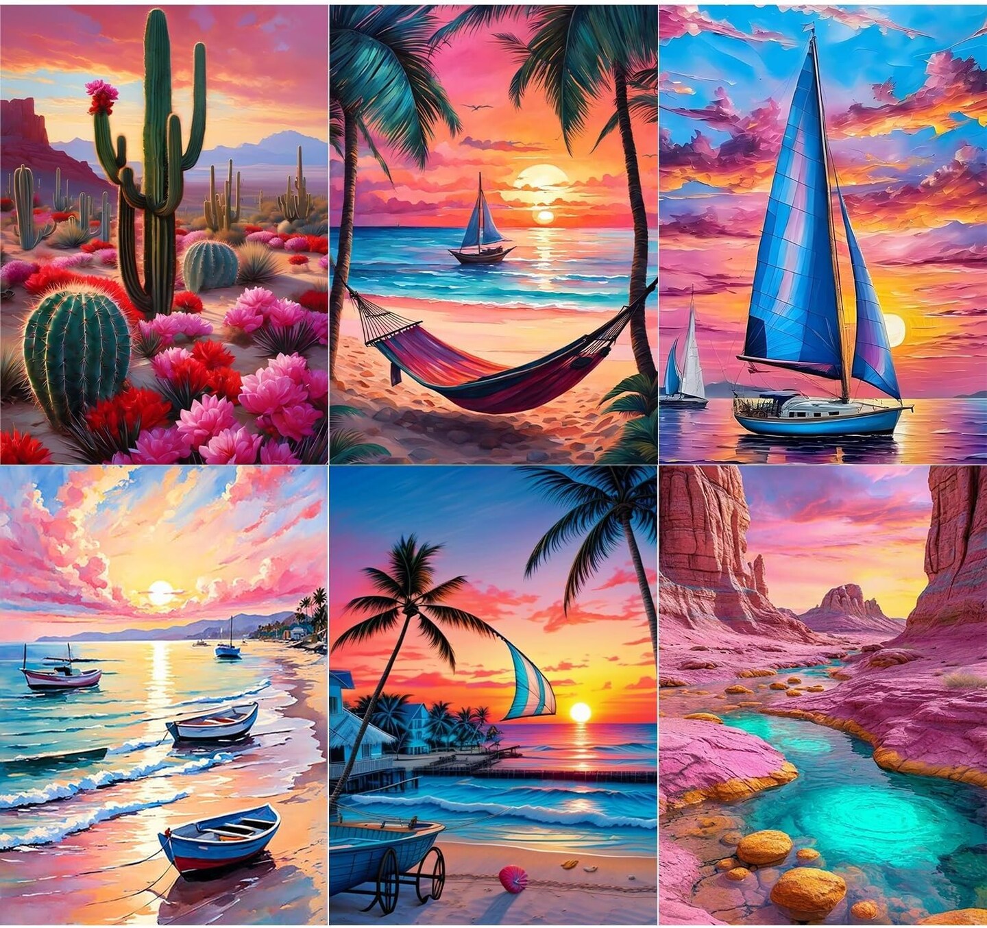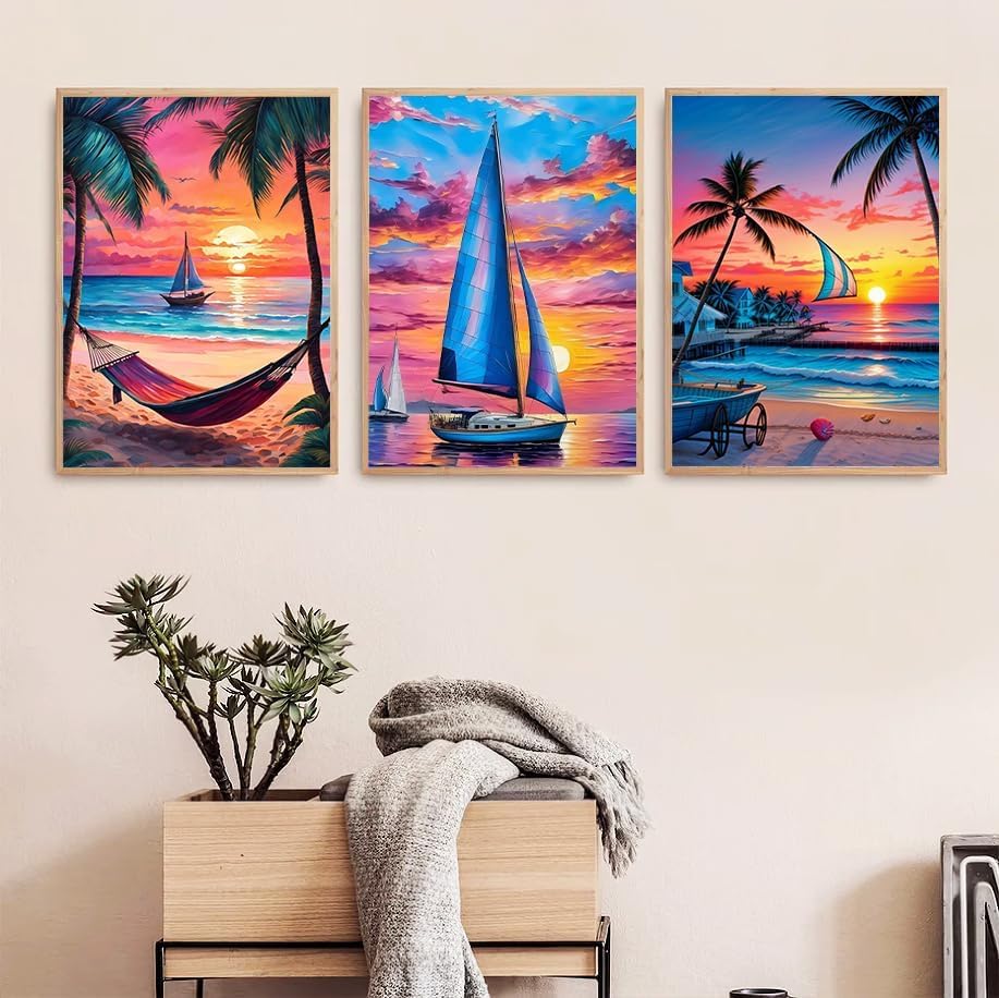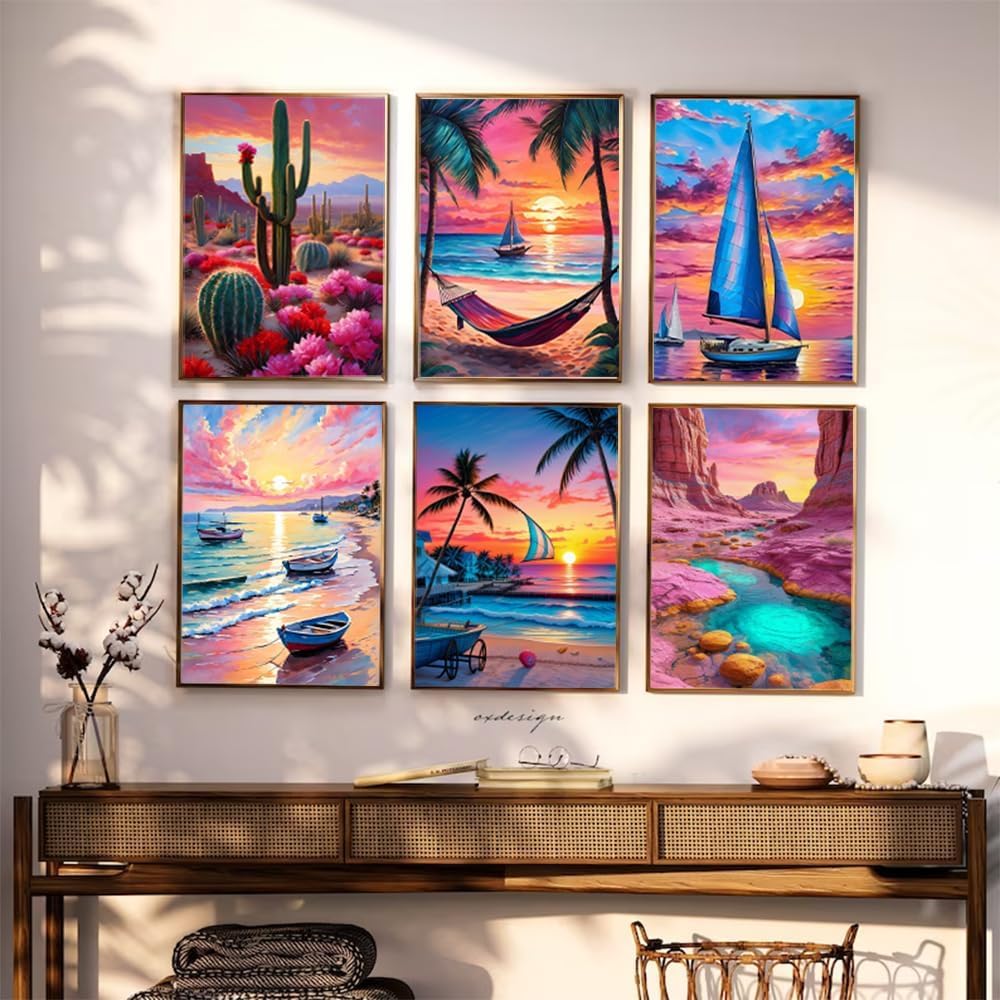6 Packs Summer Beach Daimond Paint by Numbers Kit,12x16 inch