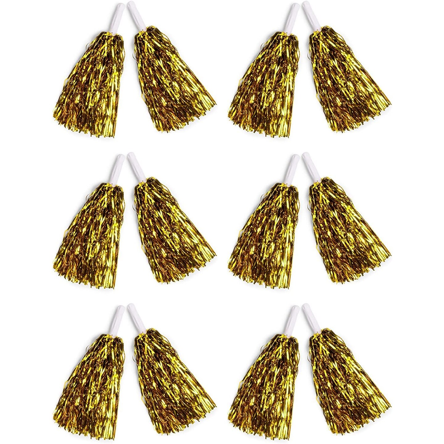 6 Pairs Cheerleader Pom Poms for Cheerleading, Sports Team Spirit Cheering Party Dance, Gold Metallic Foil