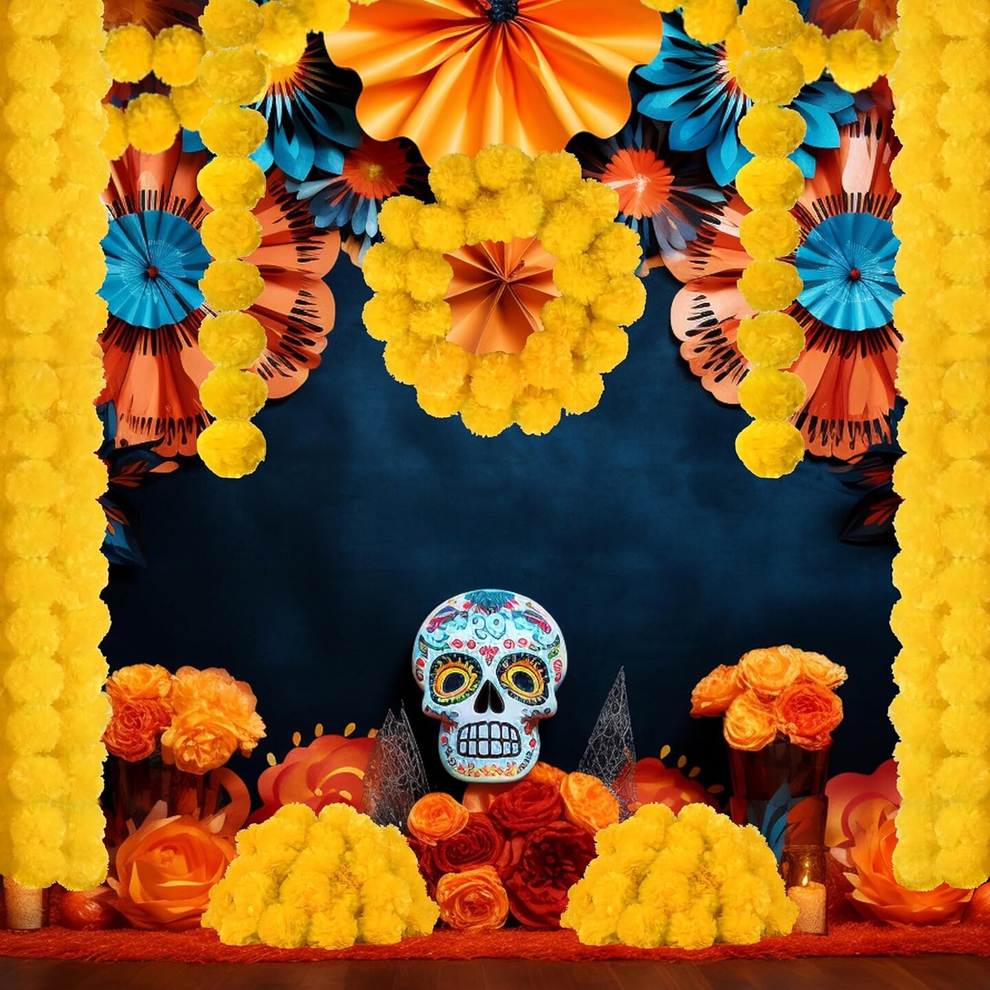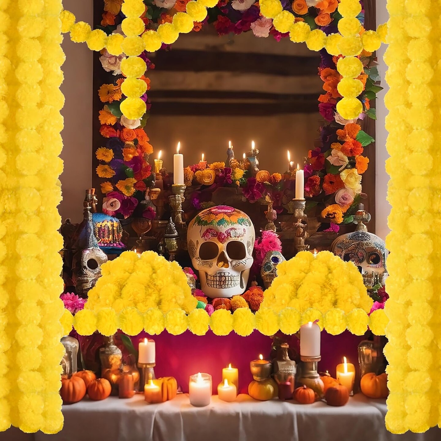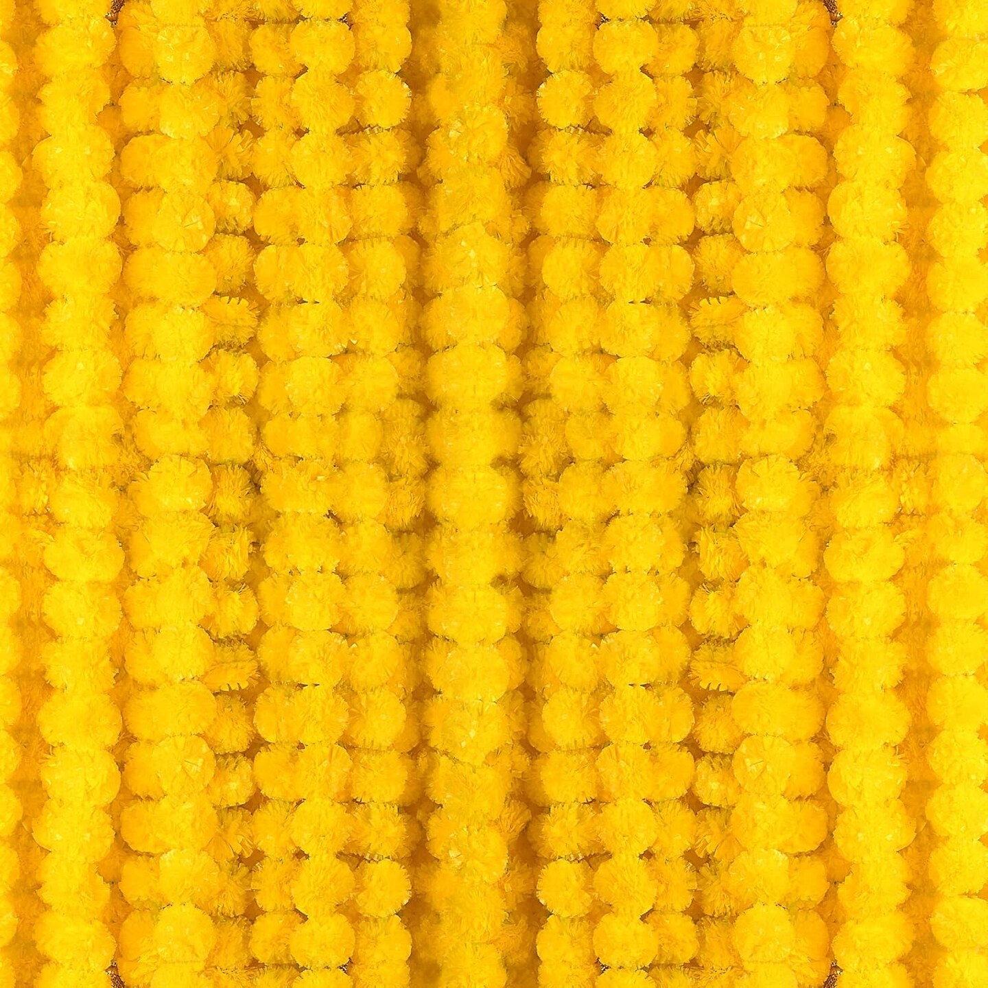6 PC - 5 Feet Marigold Garland Indian American Wedding Party (Yellow)