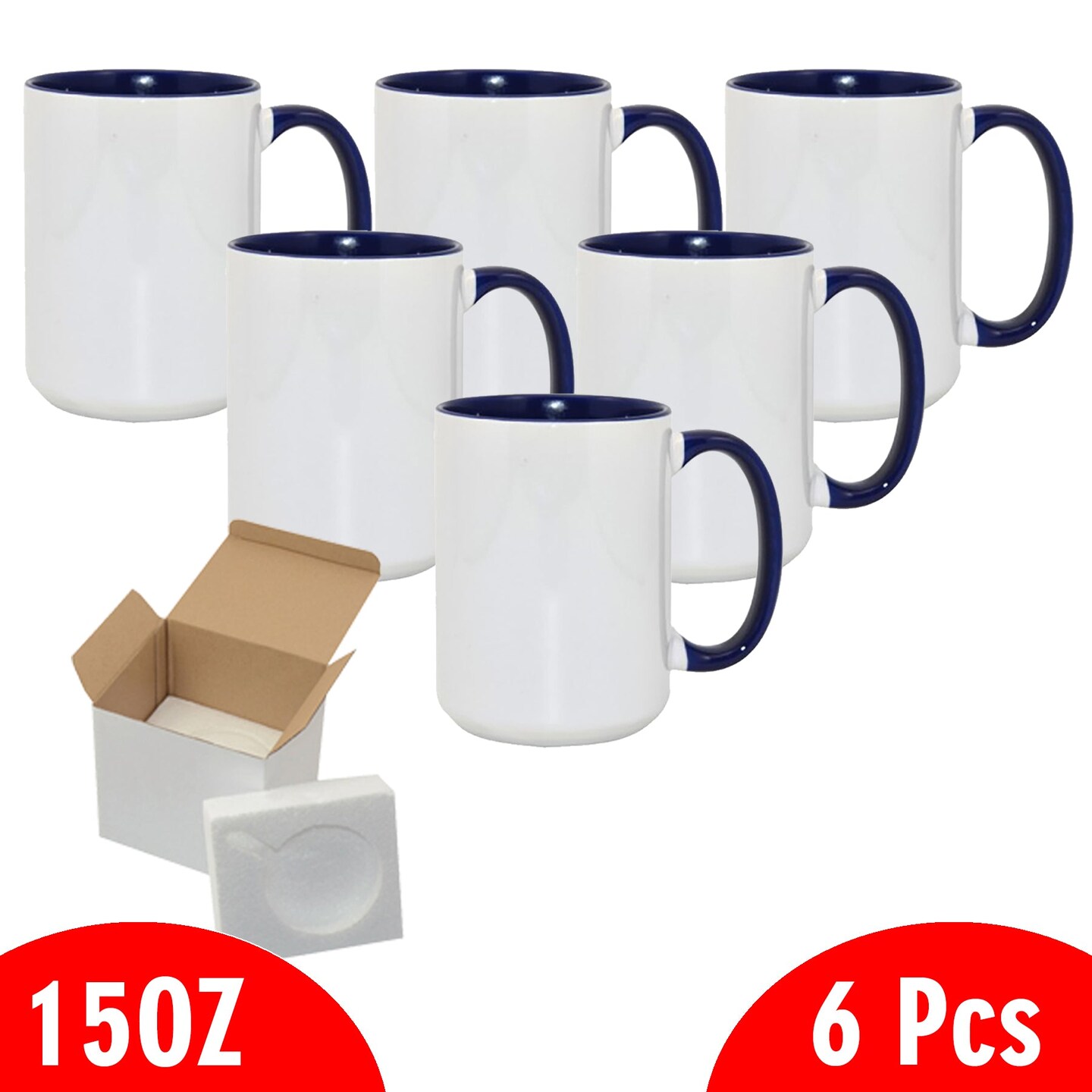 6 Pcs 15OZ El Grande Dark Blue Inside & Handle Sublimation Mugs With Foam Support Boxes