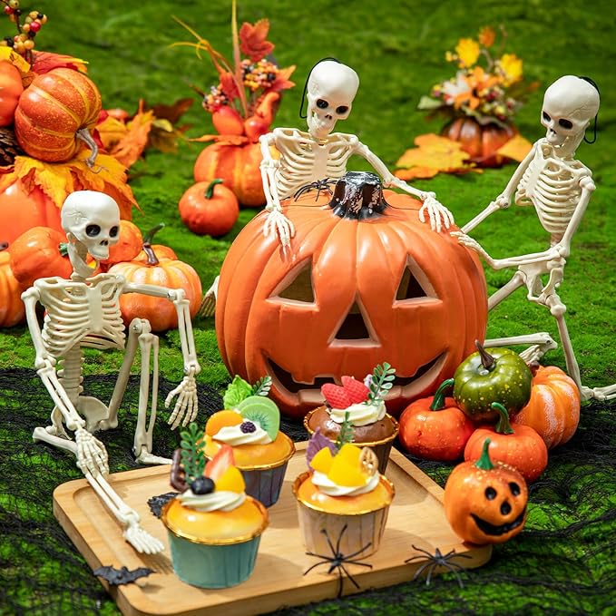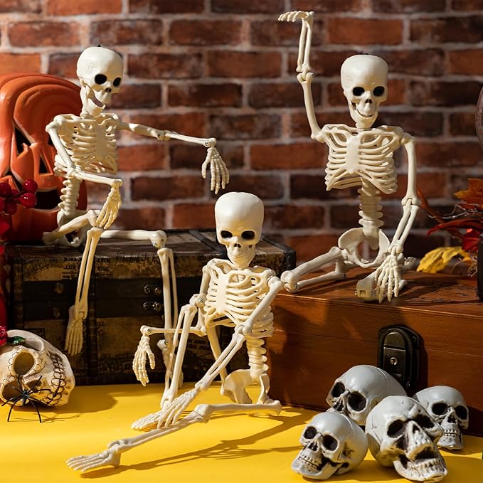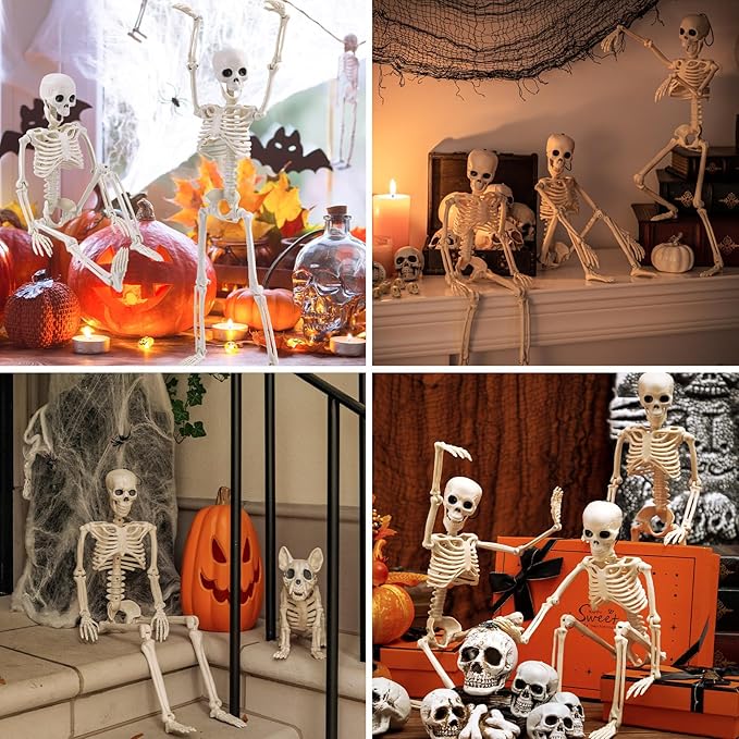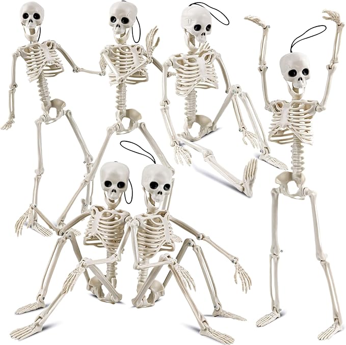 6 Pcs 16IN Halloween Skeleton Decoration, Large Full Body Posable Halloween Hanging Skeleton Decor for Indoor Outdoor Decoration
