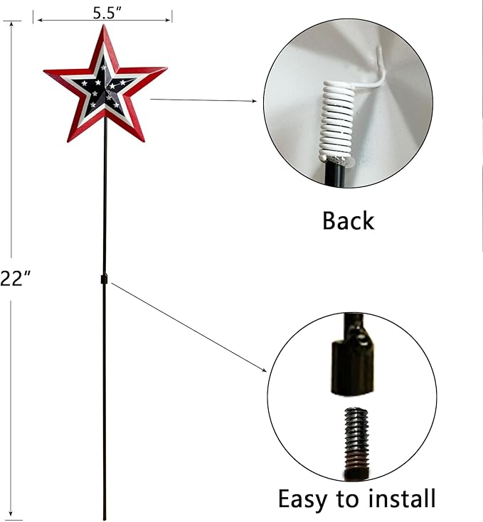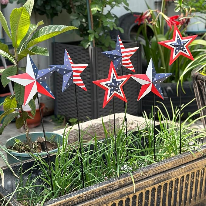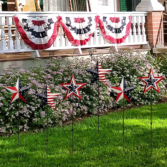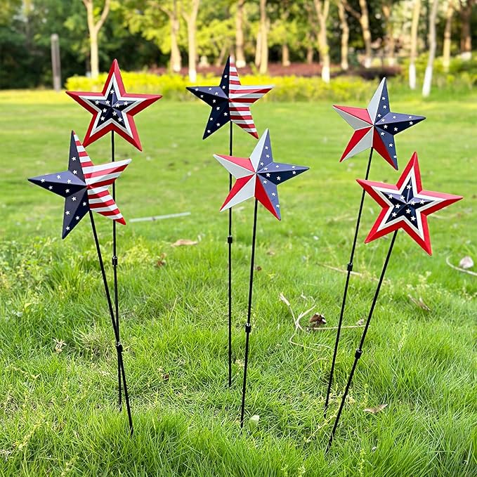 6 Pcs 22" Patriotic Metal Barn Star Garden Stakes, Red White Blue Americana Yard Signs for 4th of July Outdoor Decorations, Lawn, Porch & Garden Decor
