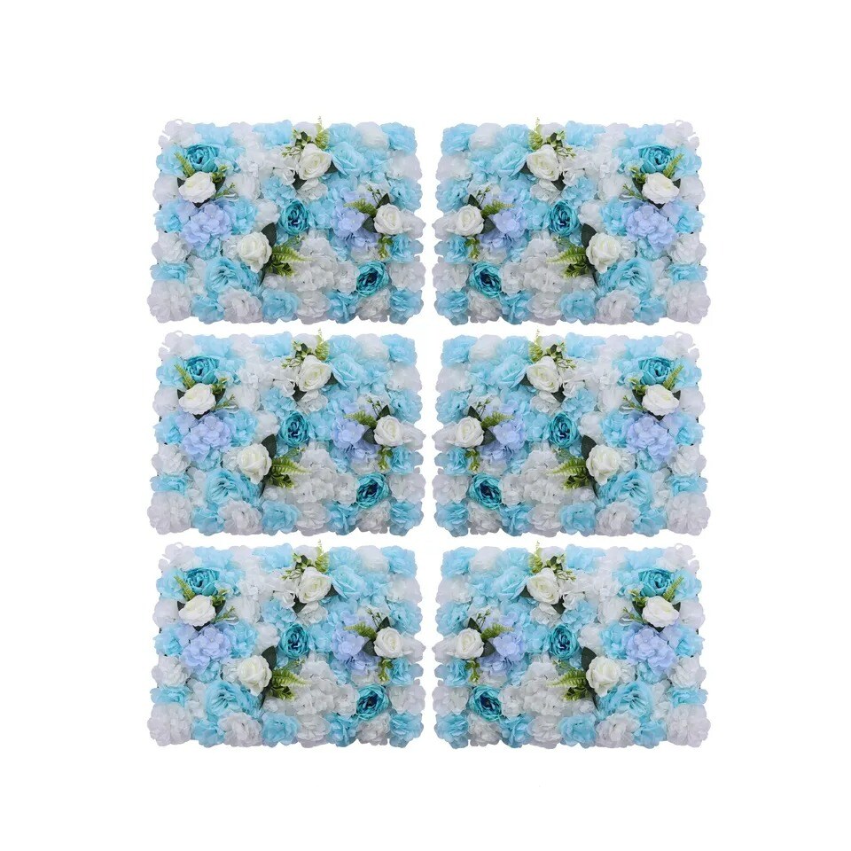 6 Pcs 24'' x 16'' Blue Artificial Flower Wall Panels Wedding Party Floral Decor