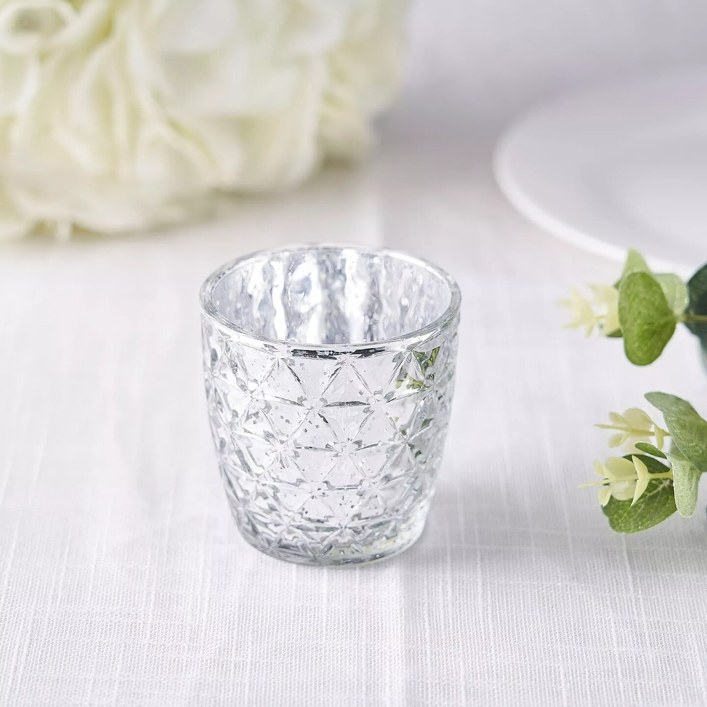 6 pcs 3" Assorted Geometric Designs Glass VOTIVE CANDLE HOLDER Party Supplies