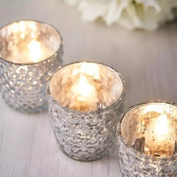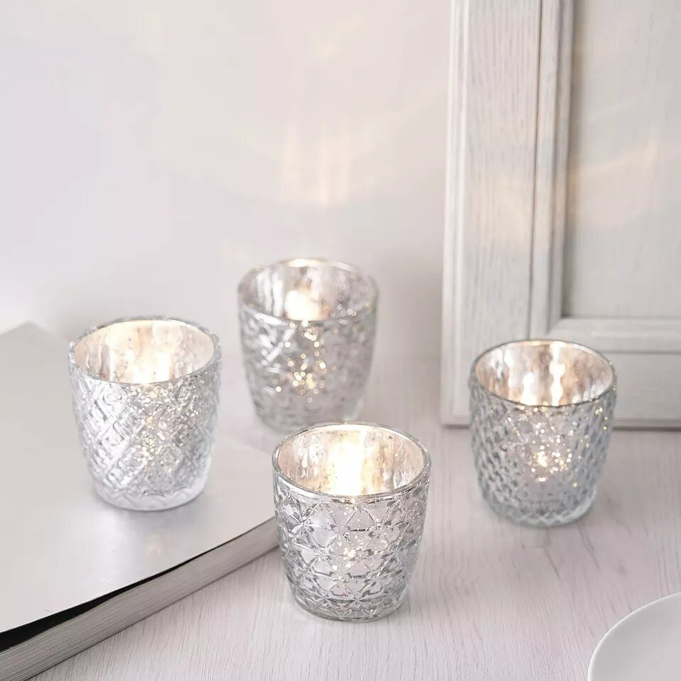 6 pcs 3" Glass Votive Candle Holders Assorted Geometric Designs Party Supplies