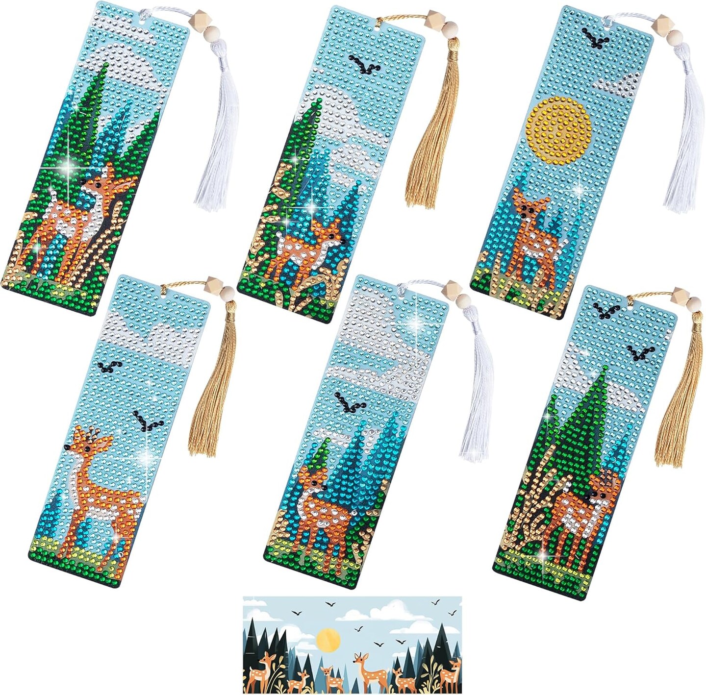 6 PCS 5D Puzzle Diamond Painting Bookmarks Deer in Forest Acrylic Diamond Art