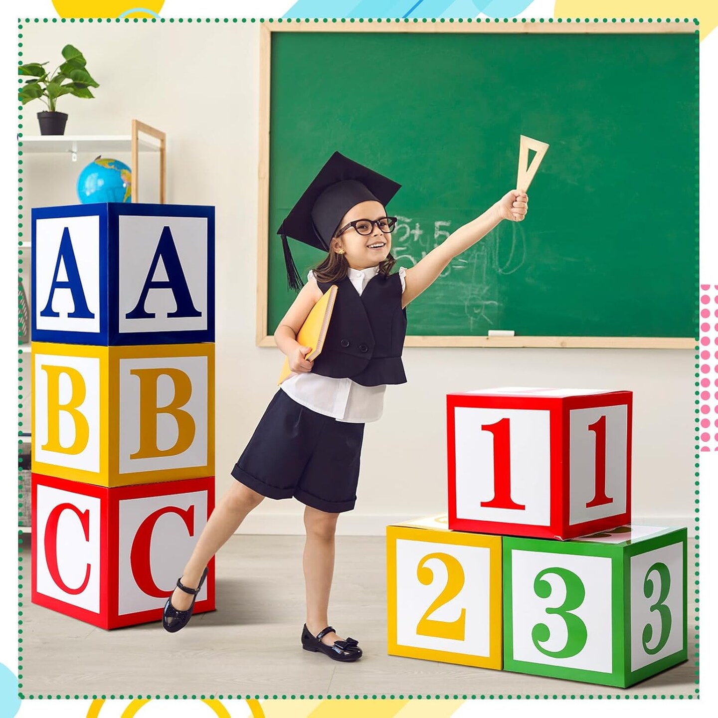 6 Pcs ABC 123 Party Decorations Back to School Decoration (Red, Yellow, Blue, Green) 14.17 x 12.2 x 1.57 inches