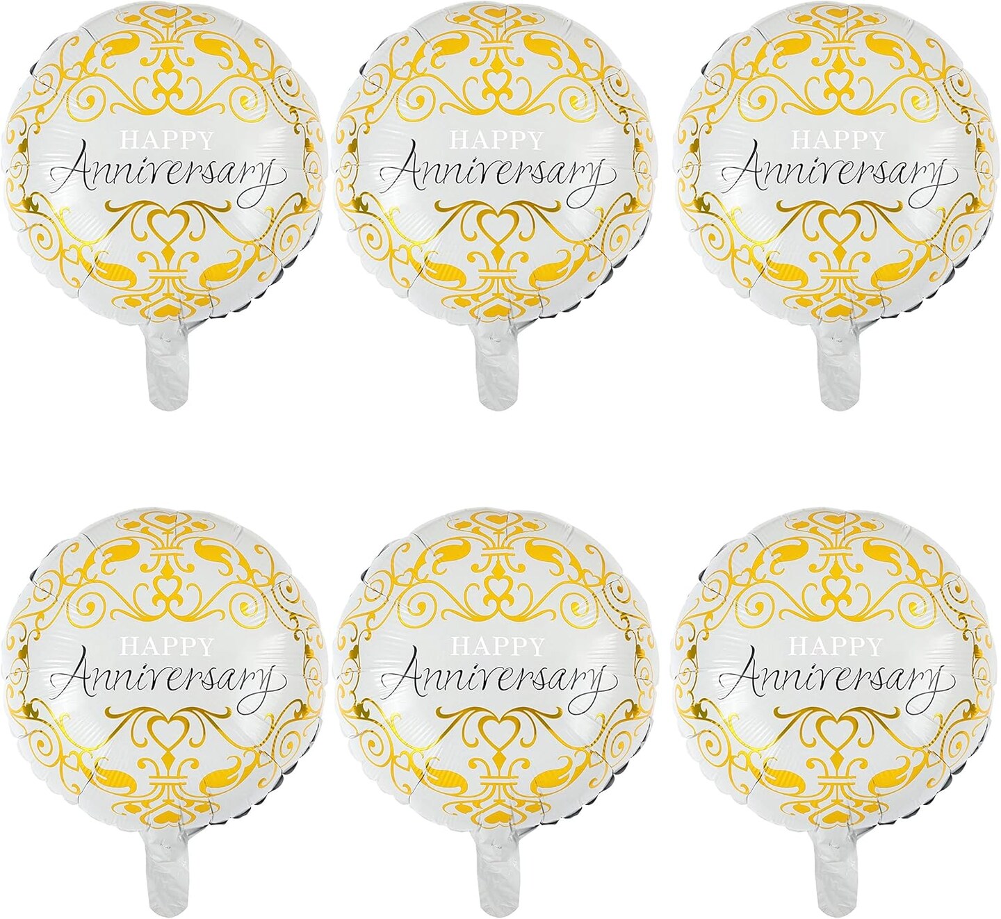 6 Pcs Anniversary Mylar Balloons Round Foil Helium Balloon (Anniversary 8)
