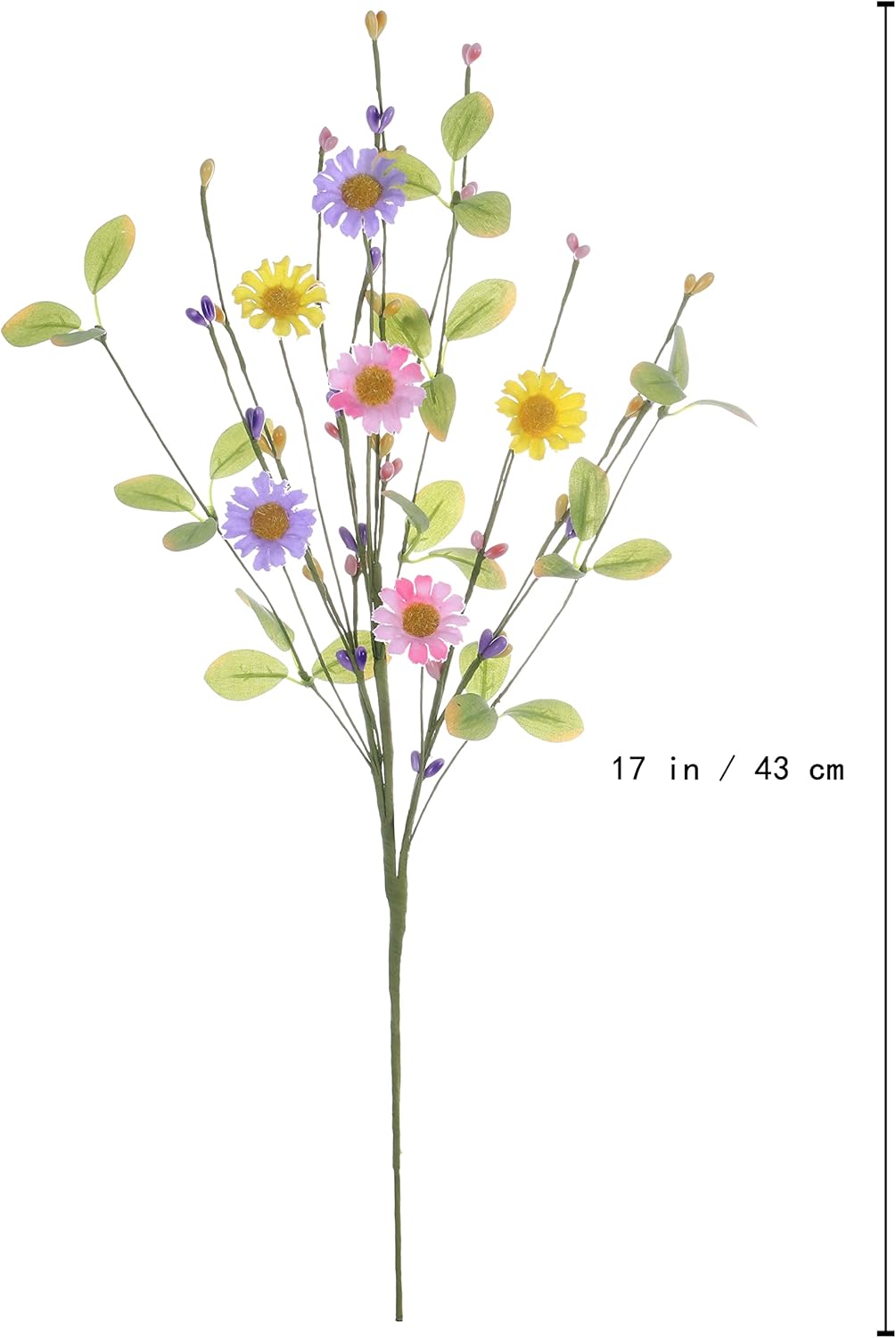 6 PCs Artificial Spring Flowers 17 Inches Summer Flower Branches Faux Floral Picks with Daisy Berry for Vase Home Indoors Flower Arrangements Table Centerpieces