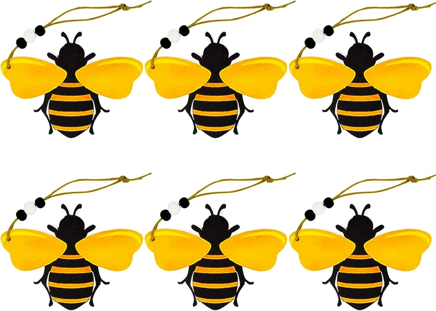6 PCS Bee Ornaments Wooden Bumble Bees