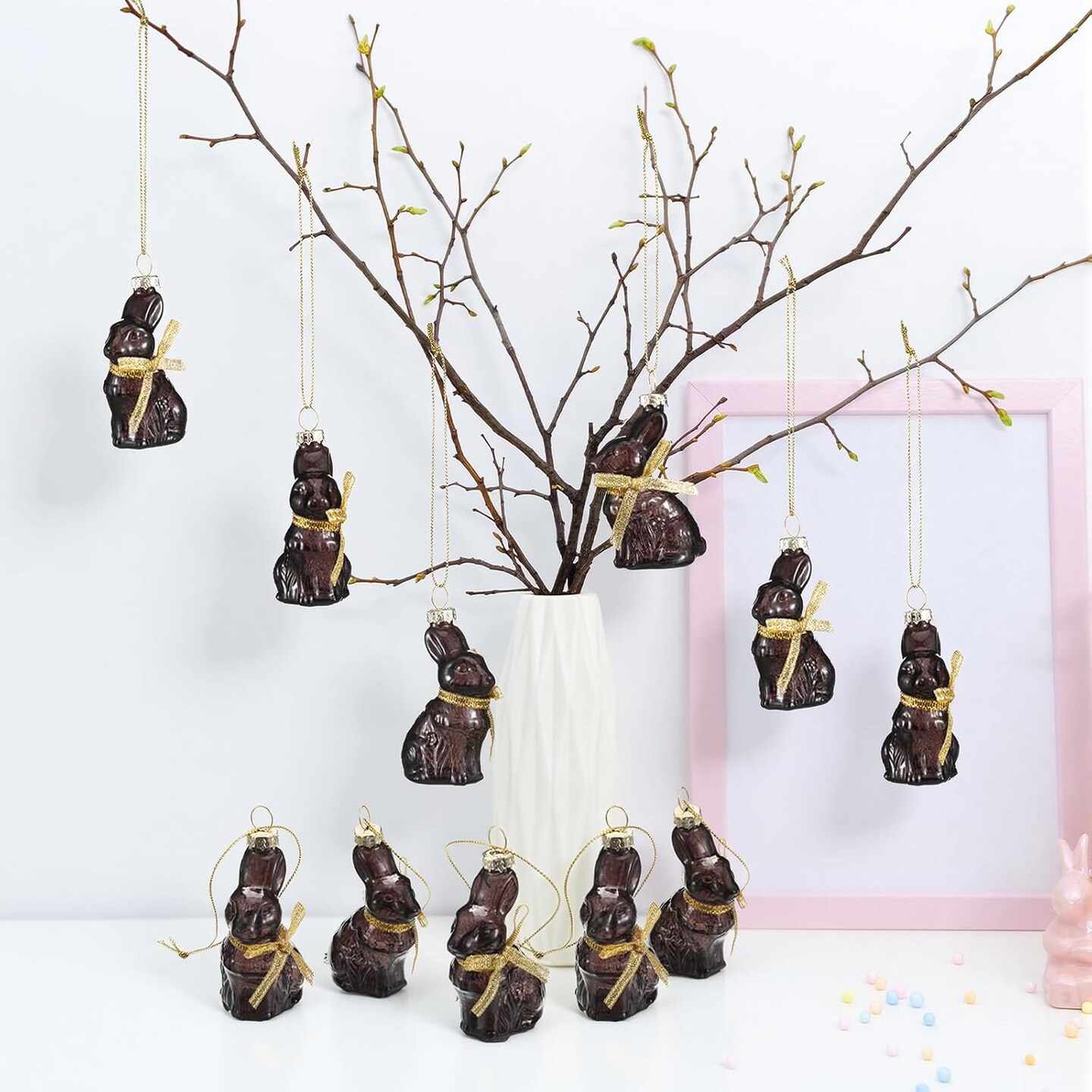 6 Pcs Chocolate Bunny Ornament Glass Brown Easter Bunny Rabbit Hanging Decoration for Easter Trees Party Decoration