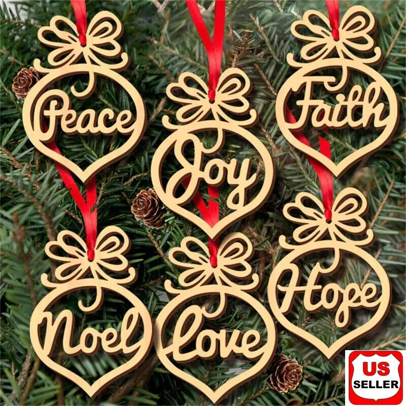 6 Pcs Christmas Decorations Wooden Ornament Xmas Tree Hanging Pendant Ornament