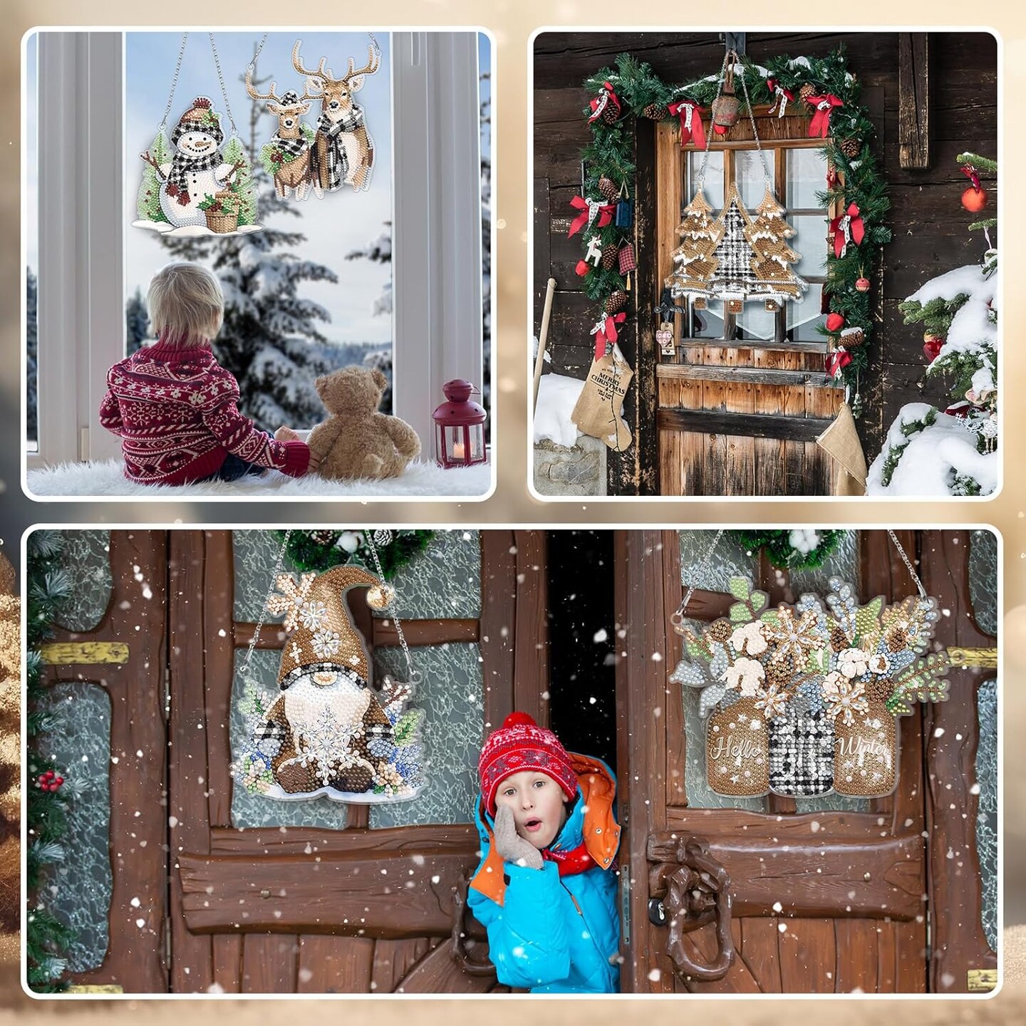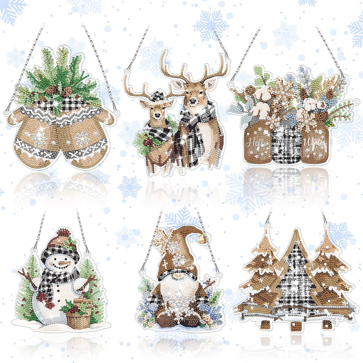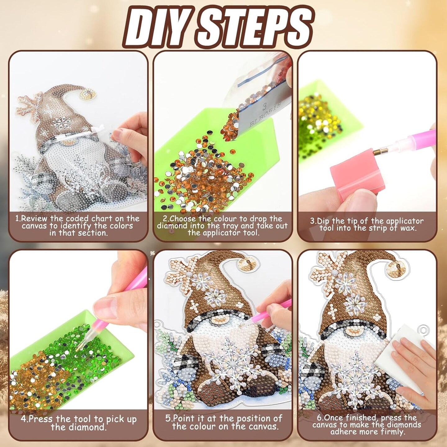 6 Pcs Christmas Diamond Painting Hanging Sign Set Gnome Diamond Art Kits (Vintage)