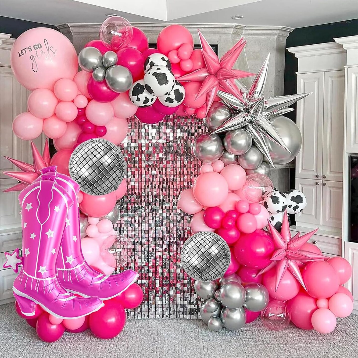 6 Pcs Cowgirl Balloons 34 Inch Hot Pink Boots Foil Balloon for Western Cowboy Theme Party Decorations Last Rodeo Bachelorette Party Garland Kit