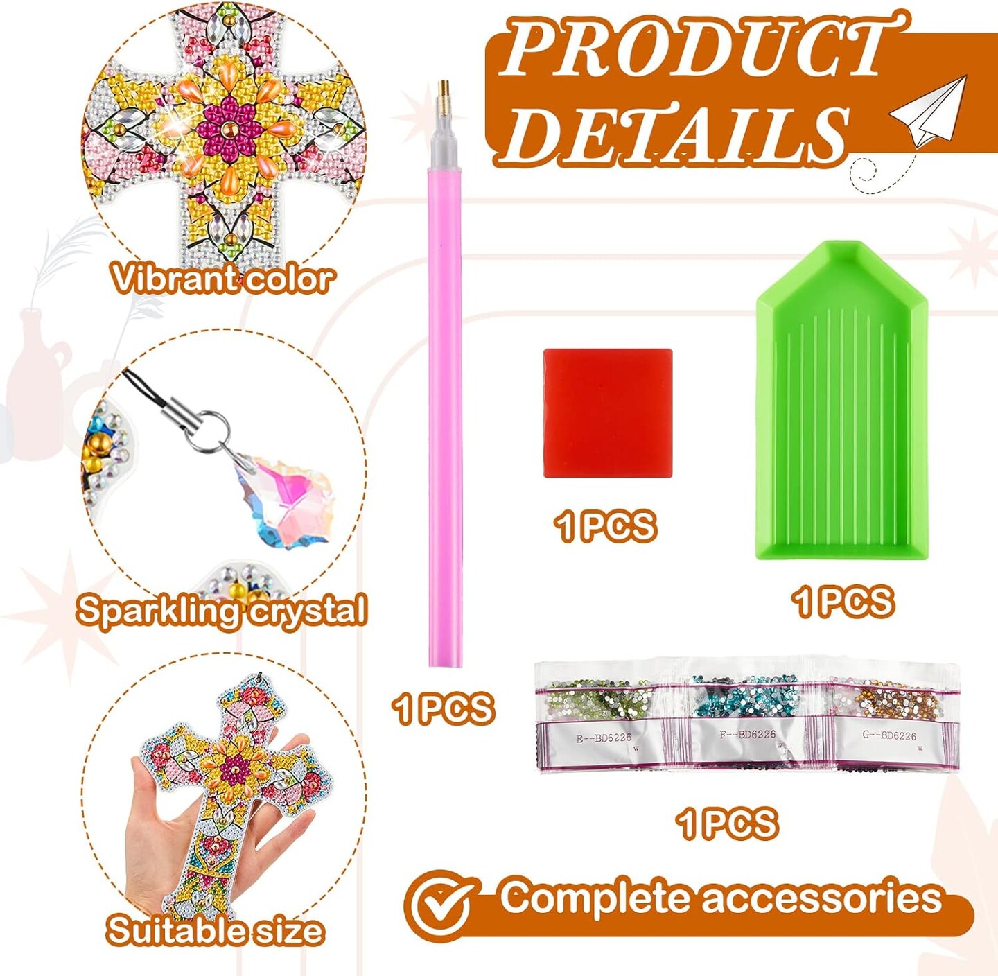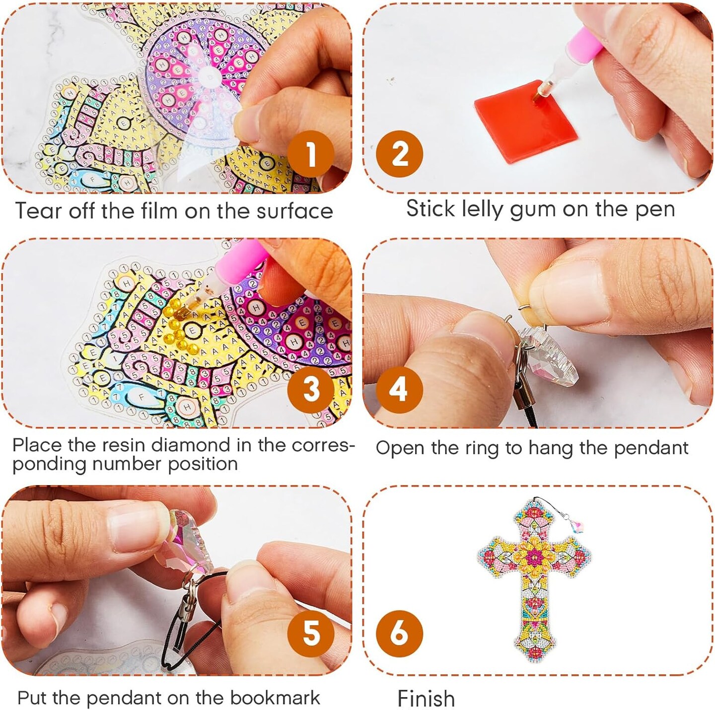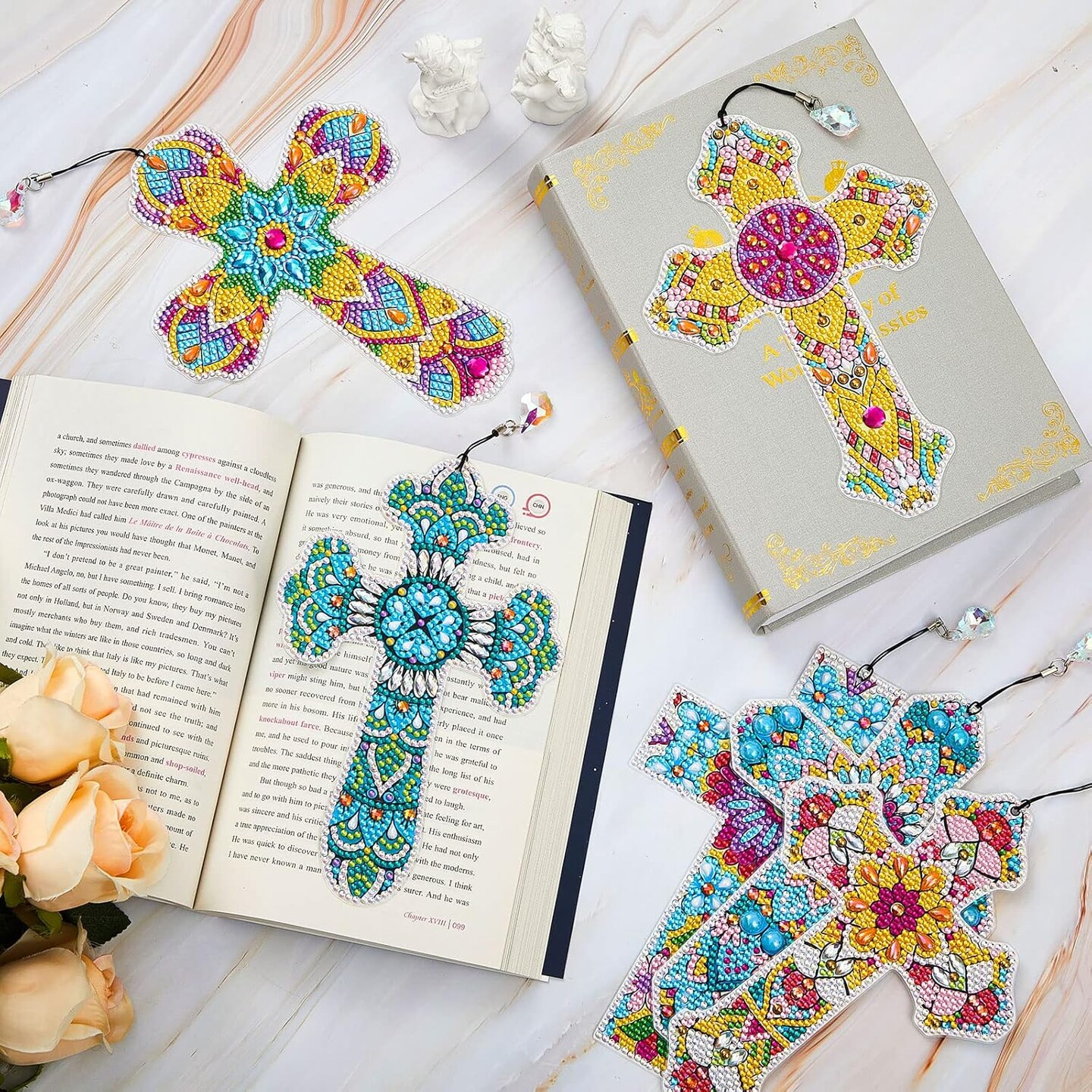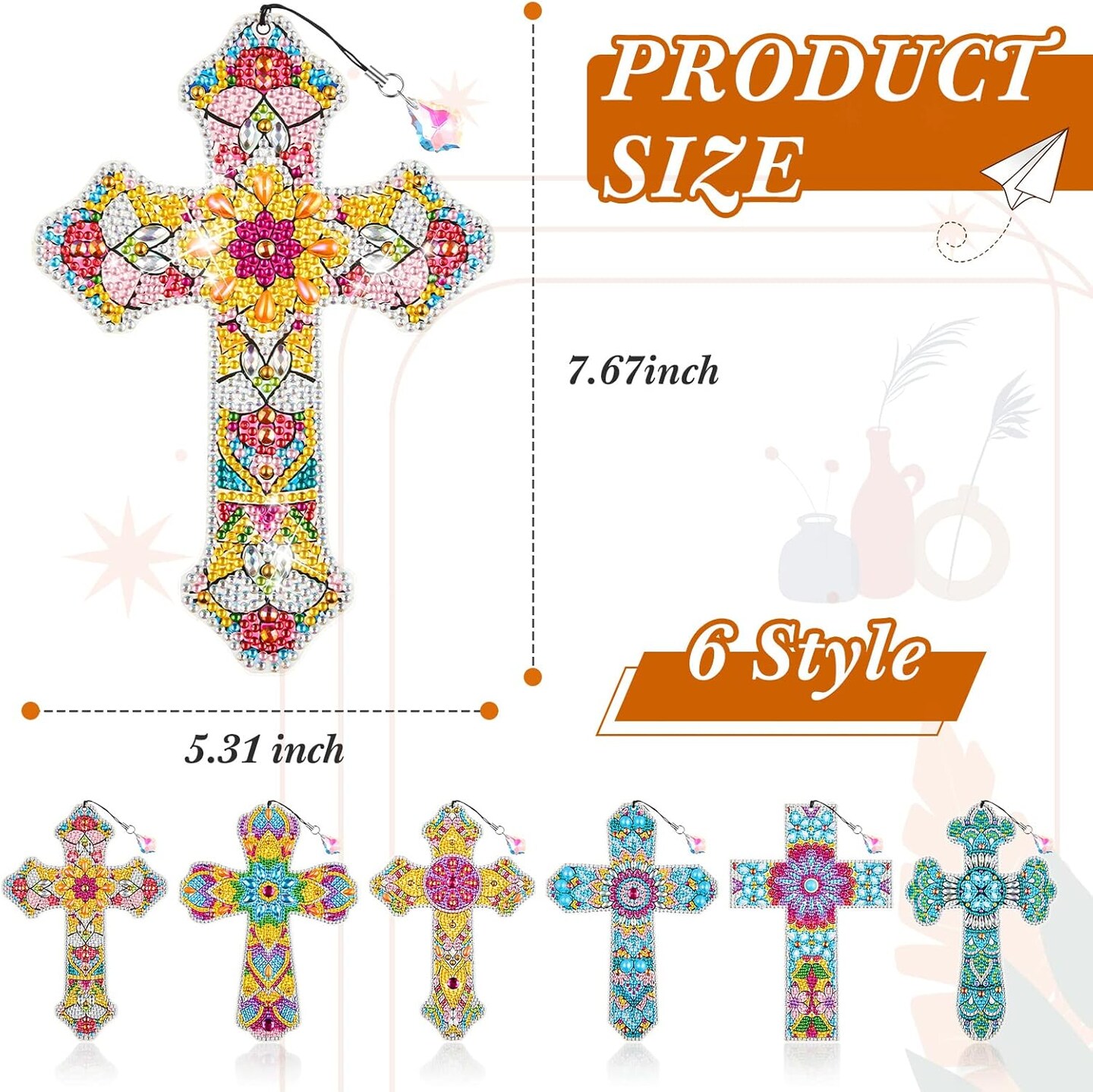 6 Pcs Cross 5d Diamond Art Bookmarks for Adult DIY Painting Kit Christmas Religious Christians Gifts Crystal Cross Diamond Bookmarks for Reading Lover Home Office DIY Crafts, 6 Styles