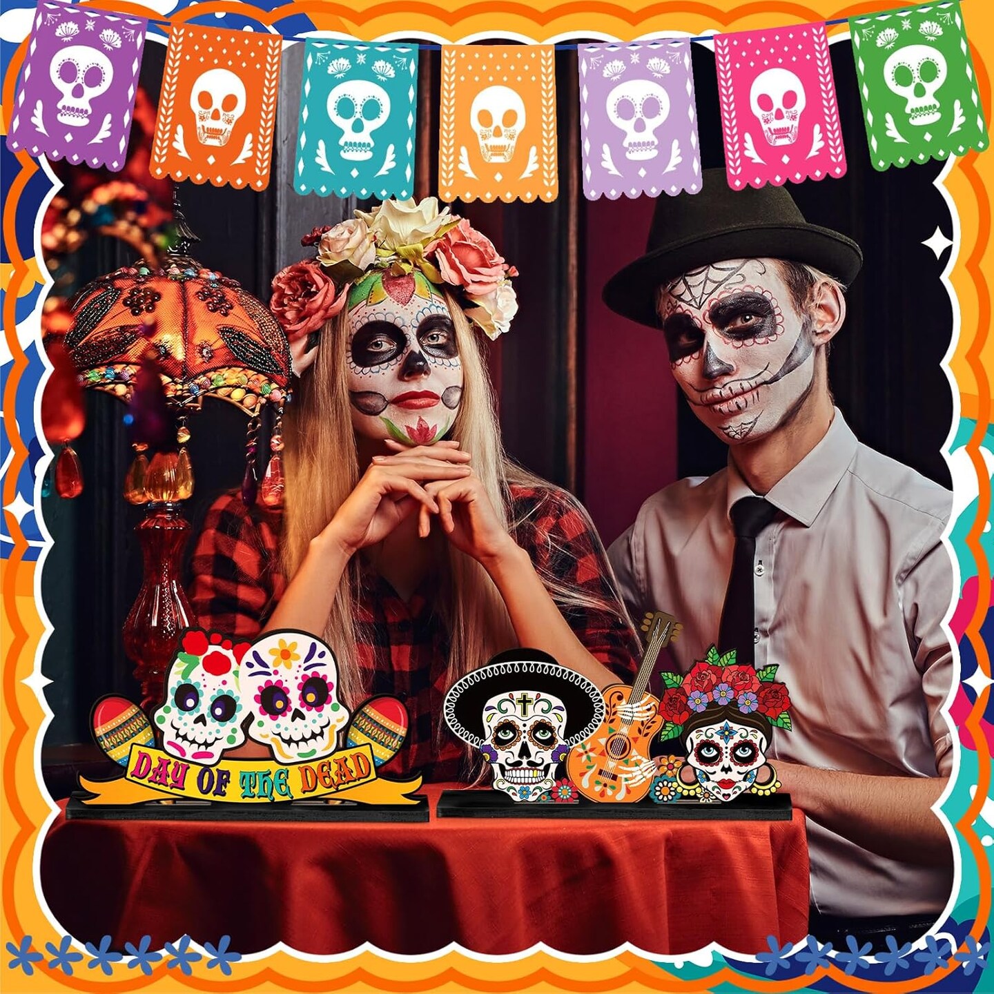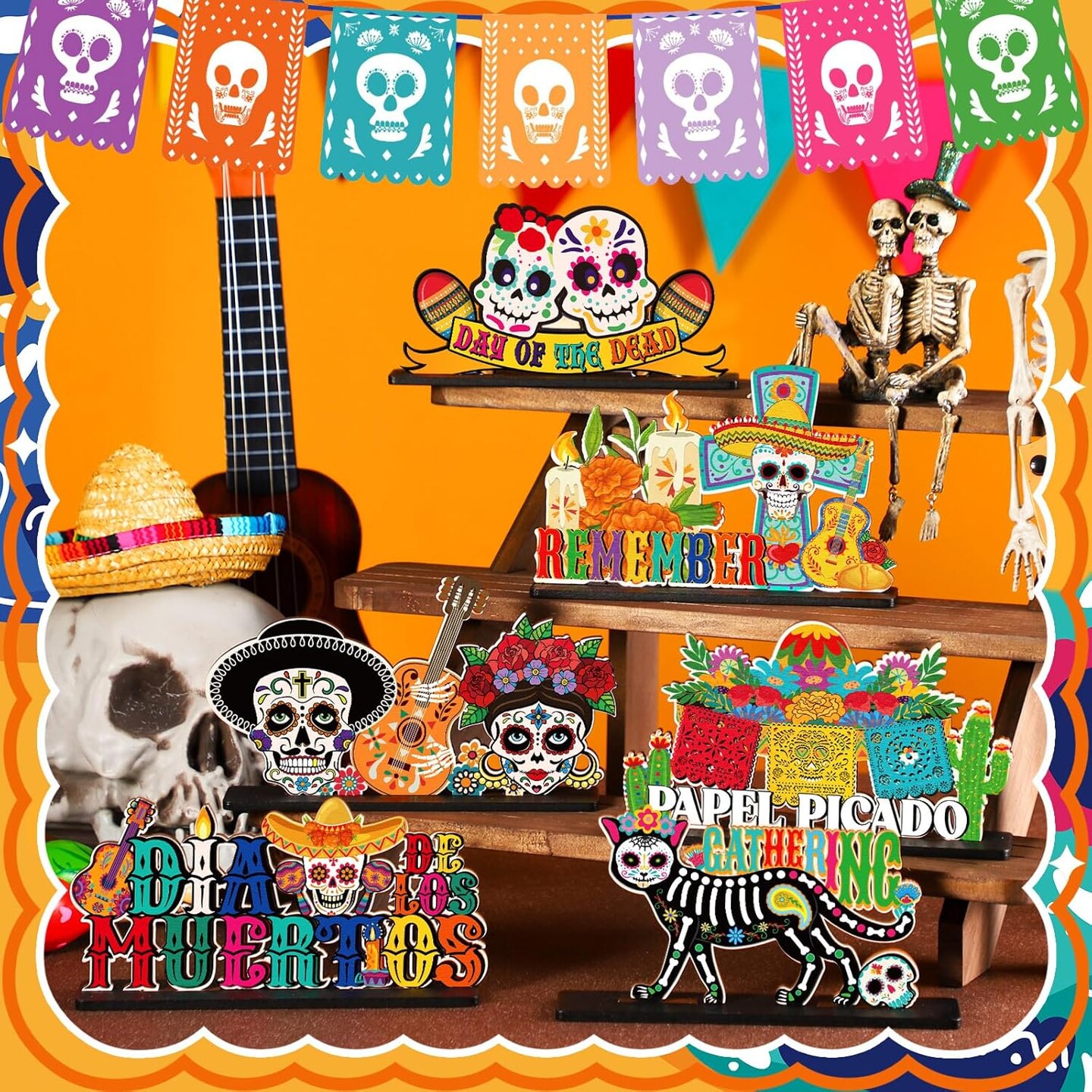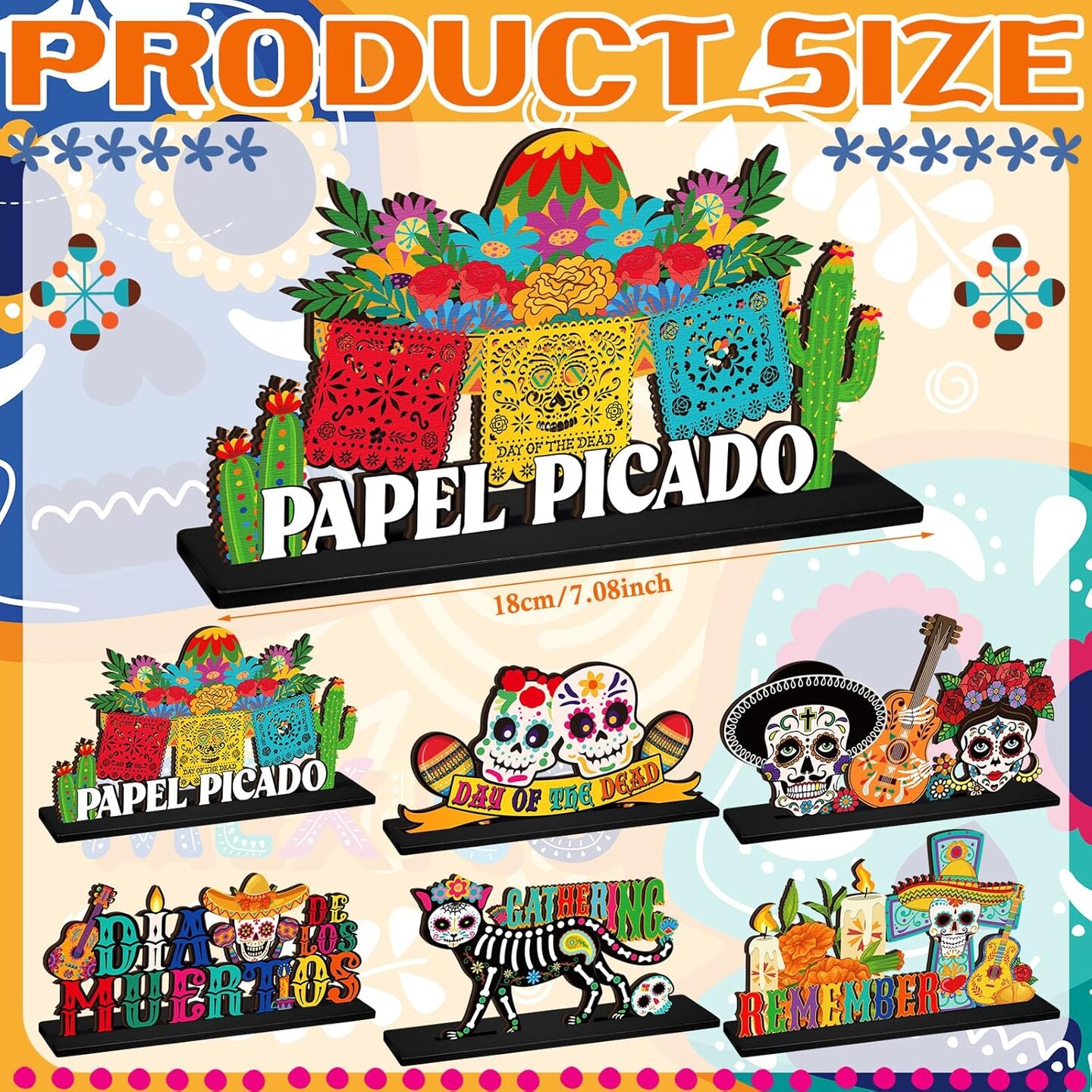 6 Pcs Day of The Dead Table Decorations Dia De Los Muertos Altar Wooden Centerpiece Sugar Skull Decor Day of The Dead Decor