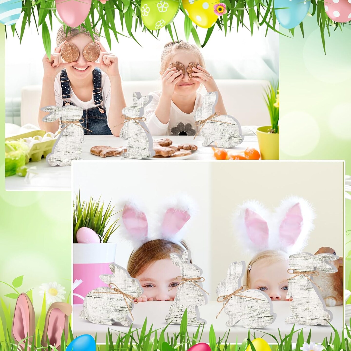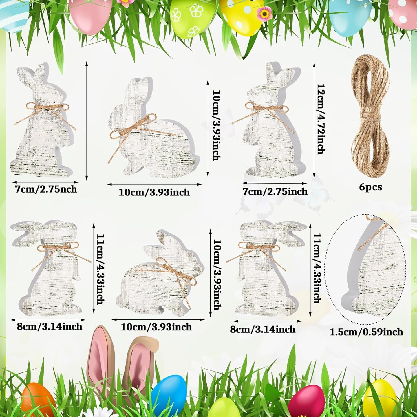 6 Pcs Easter Bunny Table Wooden Sign Decorations Rabbit Decorations with Ropes Classic Easter Decor Rustic Rabbit Shaped Tabletop Centerpieces for Party Gifts Home Tiered Tray Decor