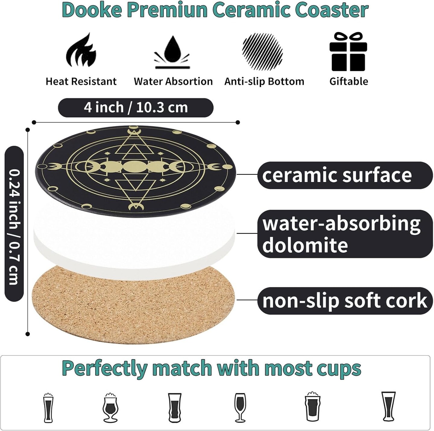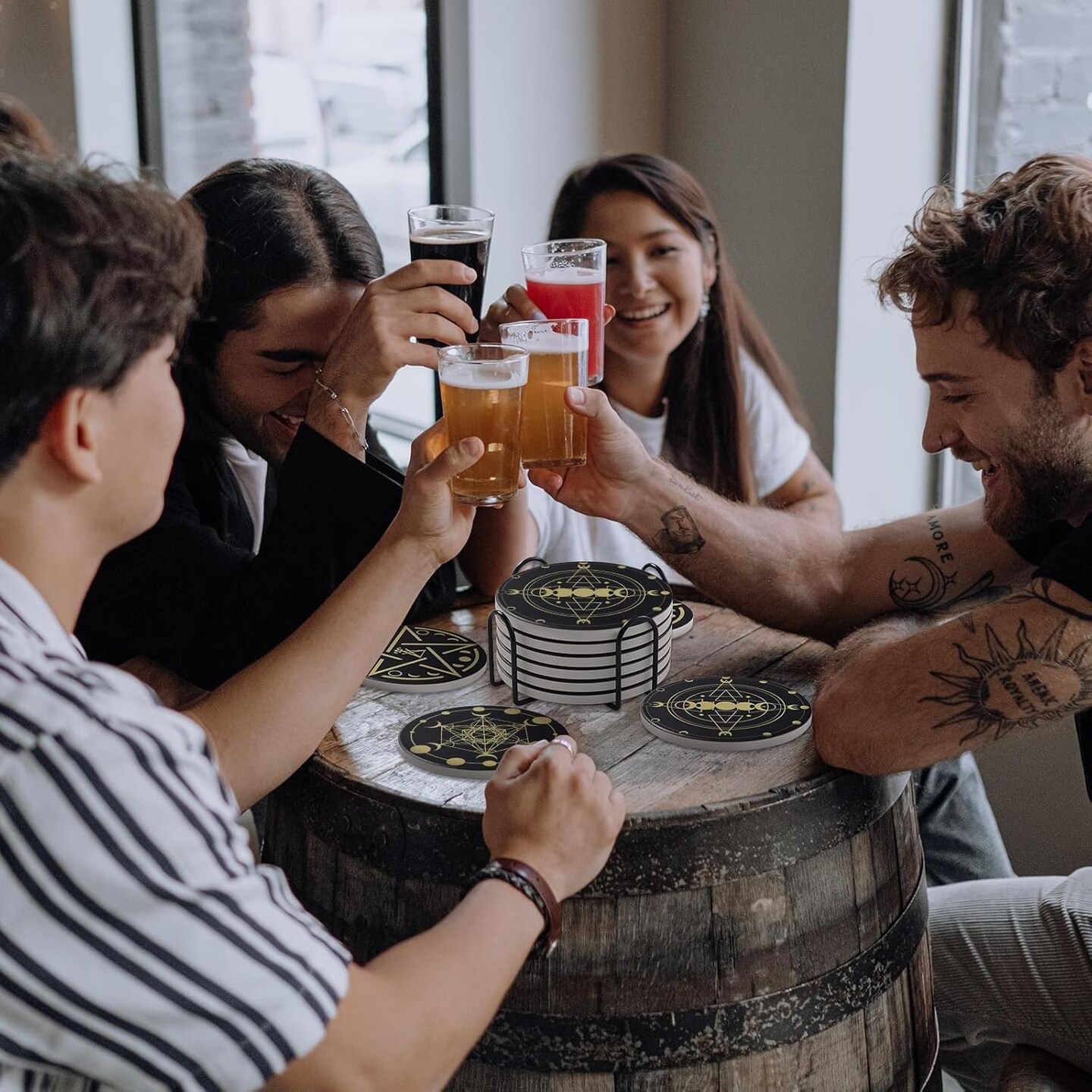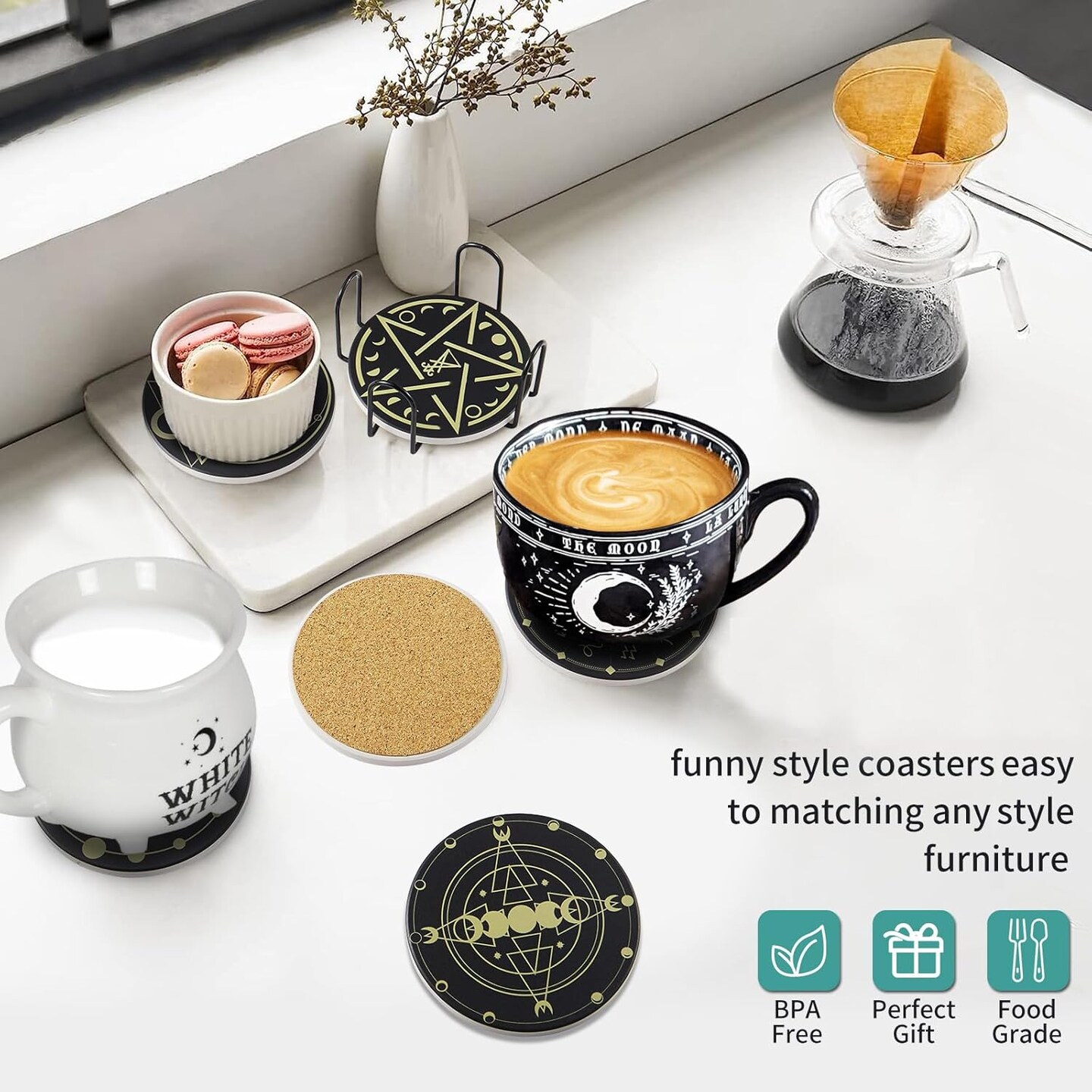 6 Pcs Funny Set with Holder,Witchy Coasters for Drinks,Kitchen Witch Decor