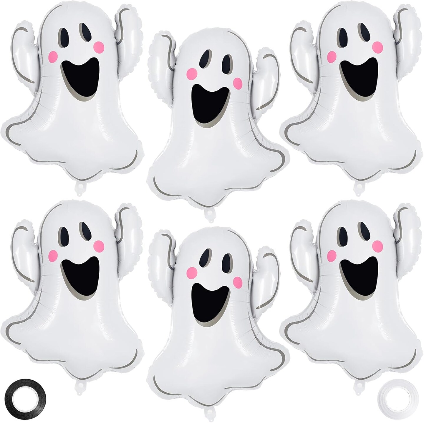 6 Pcs Halloween White Ghost Shaped Foil Balloon(White)
