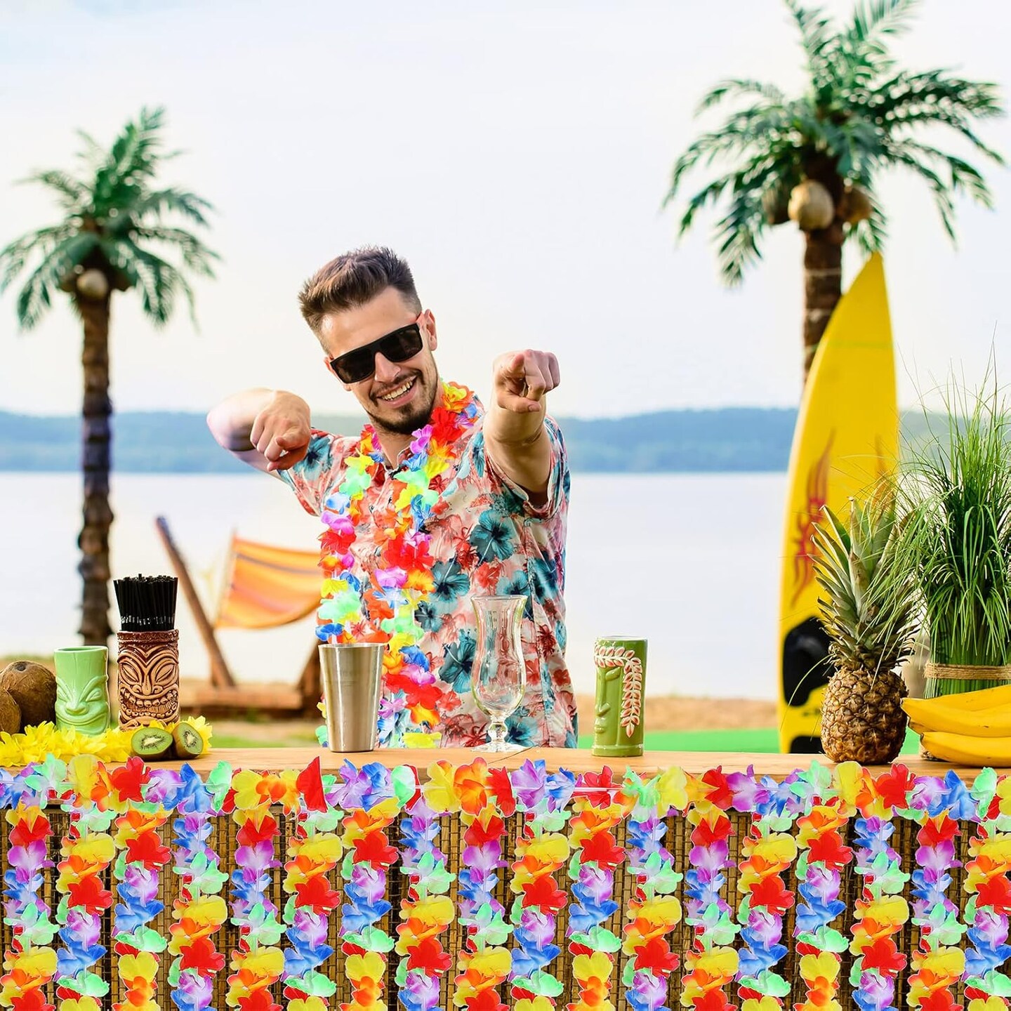 6 Pcs Hawaiian Luau Party Decorations Tropical Flower Garlands Multi Colored Hibiscus Leis Banner for Hula Dance Summer Beach Birthday Party Supplies, 16.4 ft Each