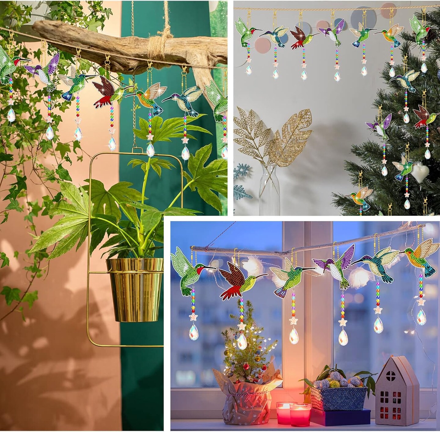 6 Pcs Hummingbird Diamond Art Wind Chimes – Double-Sided 5D DIY Rhinestone Summer Suncatchers for Adults, Crystal Pendant Home & Garden Decor