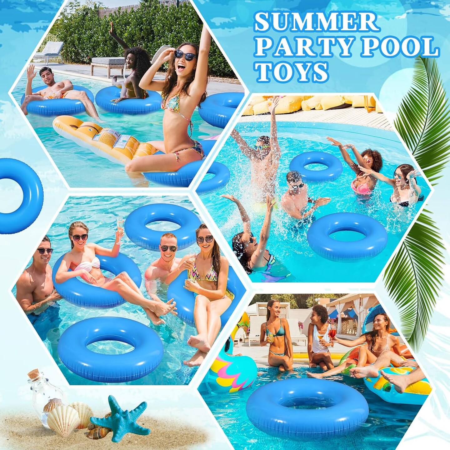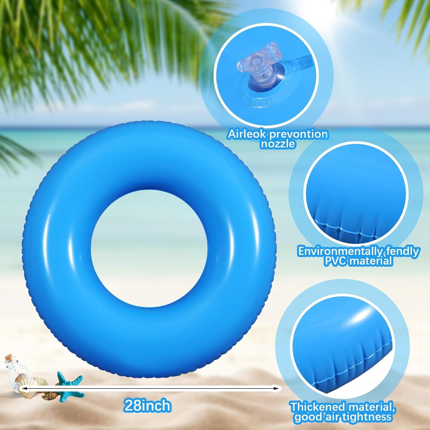 6 Pcs Inflatable Pool Floats 28 Inches Swim Tube Bulk for Adults Swimming Ring Pool Floaties for Beach Party Decorations Women and Men River Lake Summer Vacation Holiday (Blue)