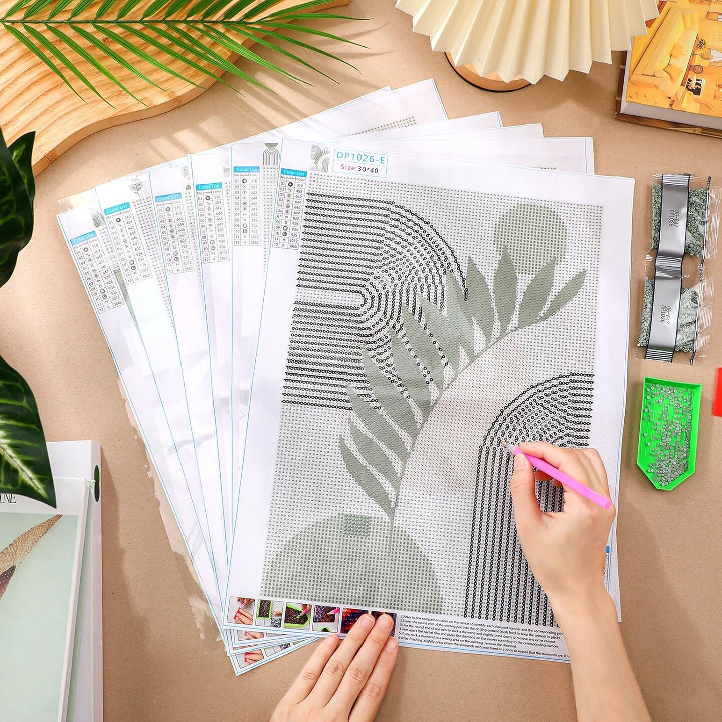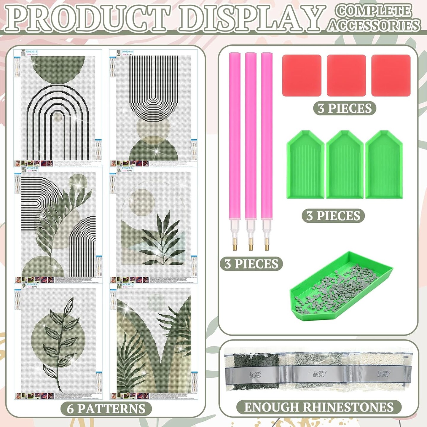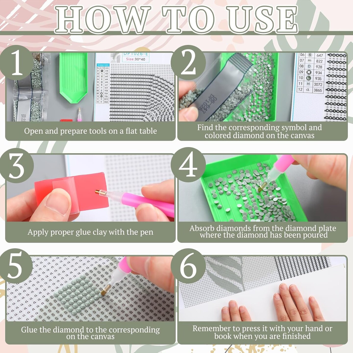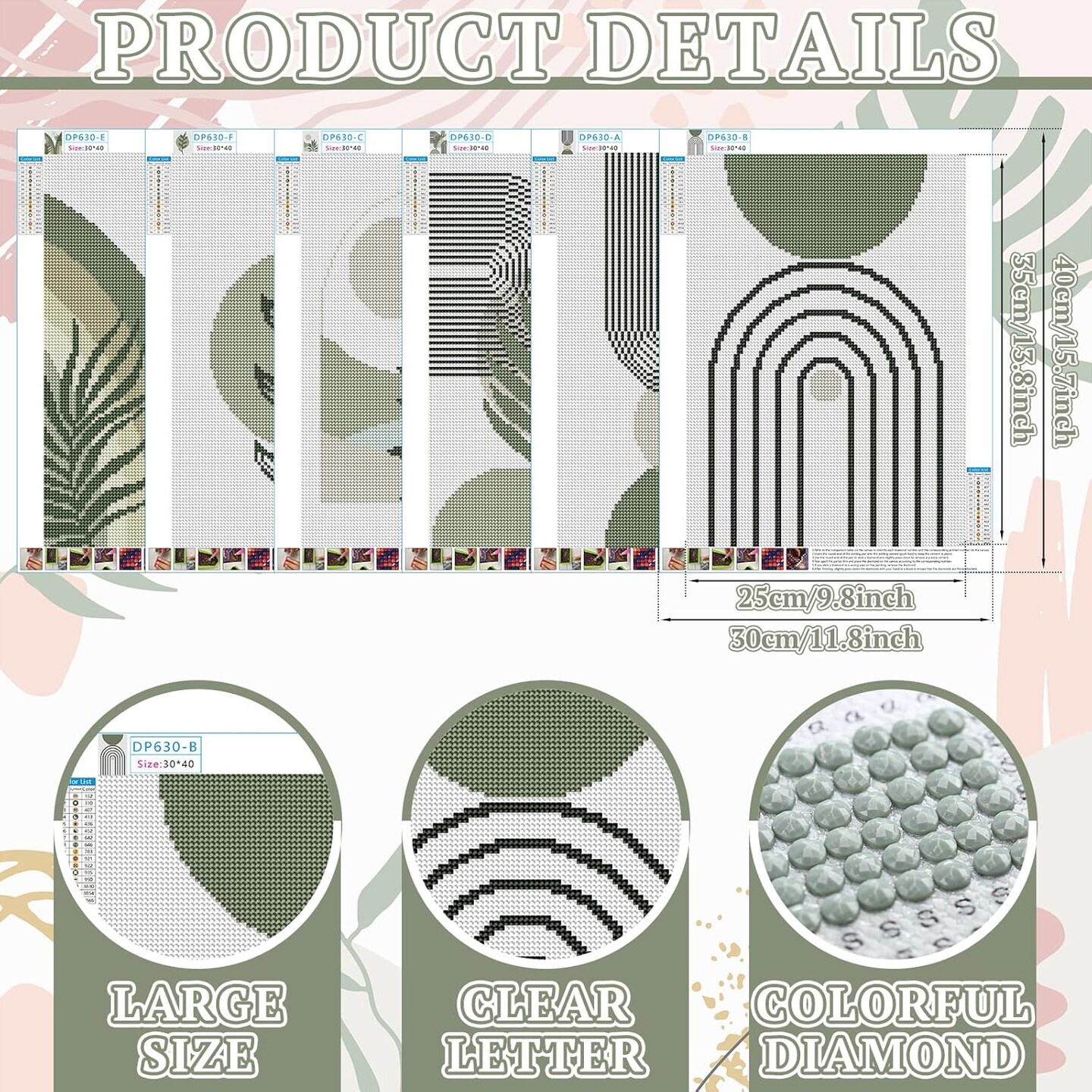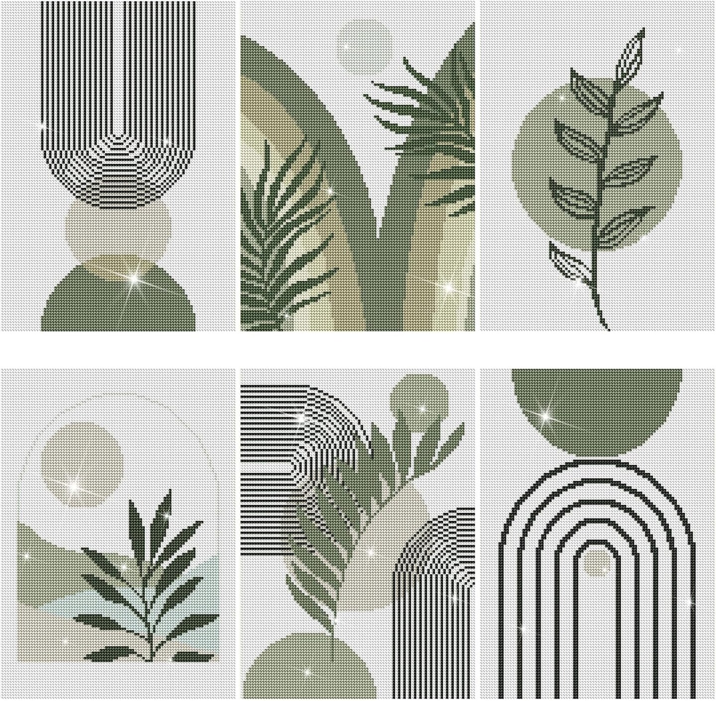 6 Pcs Sage Green Boho Diamond Wall Art Kits 12 x 16 Inches Diamond Art Painting Accessories Abstract 5d DIY Crafts for Adults Home Wall Decoration
