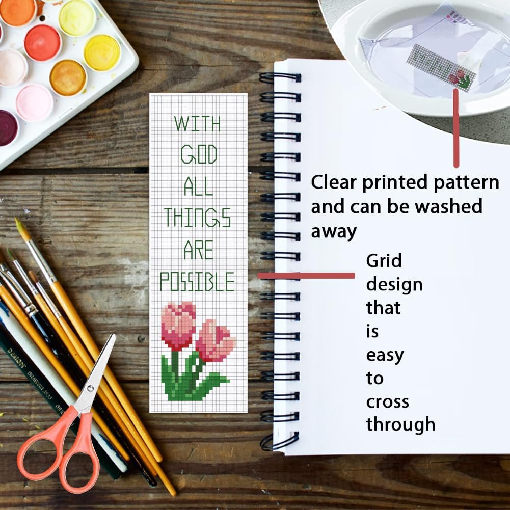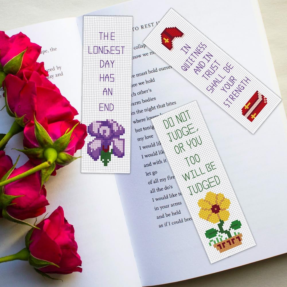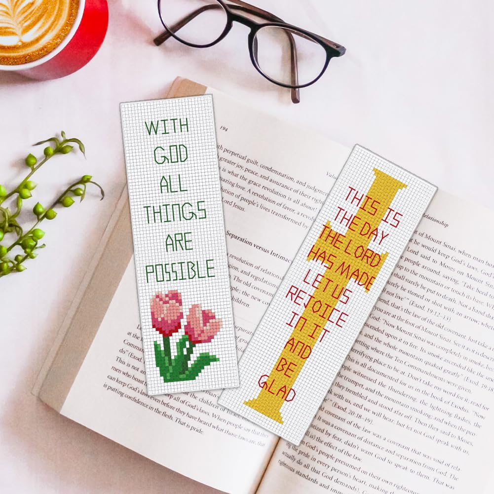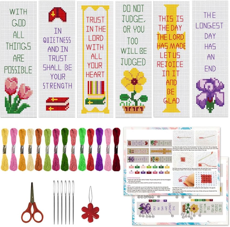6 PCS Stamped Cross Stitch Bible Verse Bookmark Kit for Beginners – DIY Embroidery Bookmarks with Backing Felt, Threads, Needles & Instructions for Adults and Book Lovers