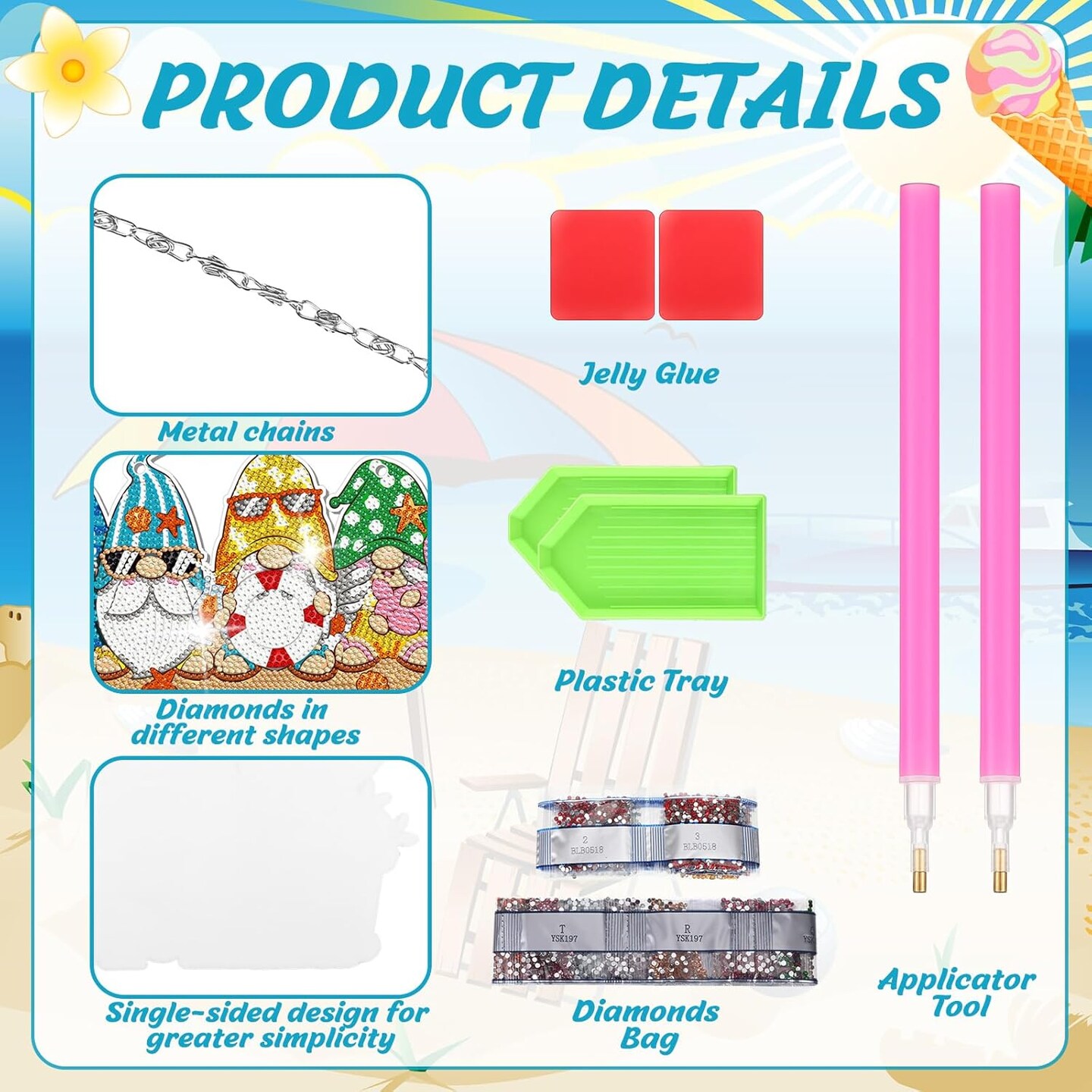 6 Pcs Summer Diamond Painting Hanging Sign Set Beach Gnome Diamond Art Paint