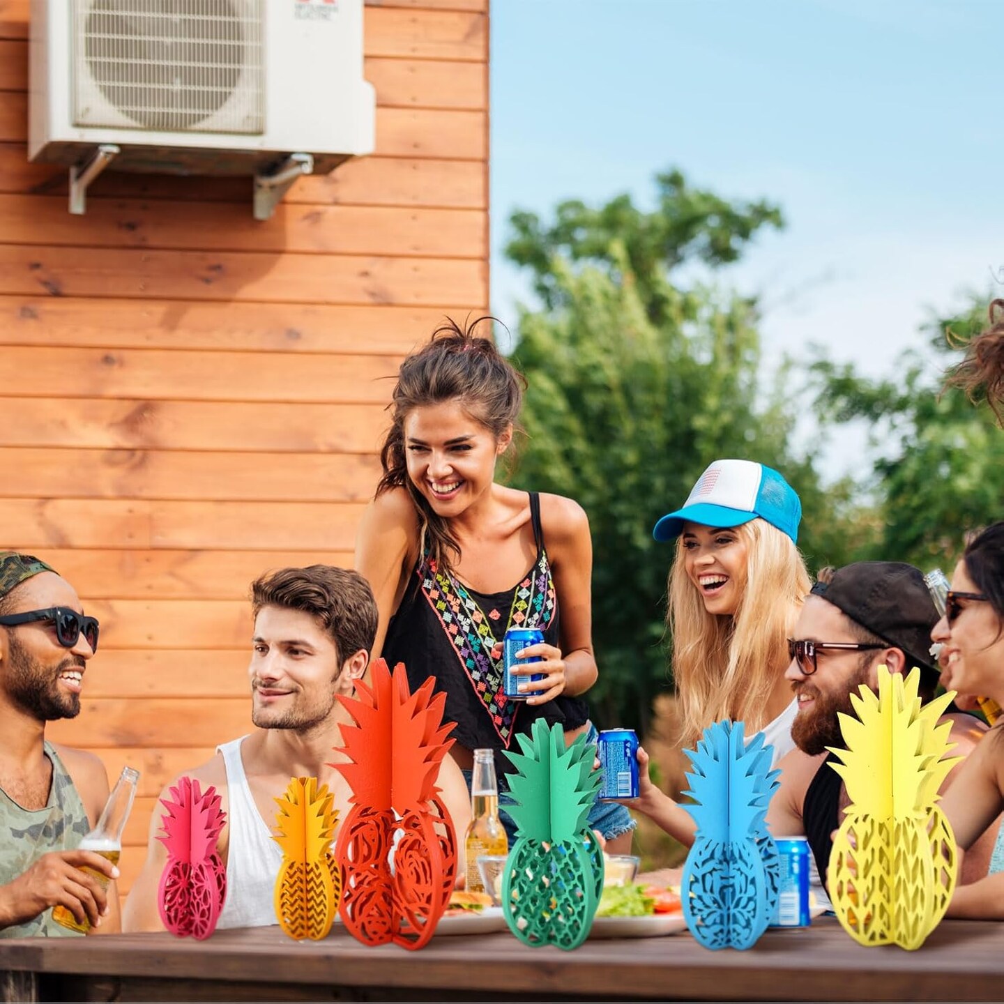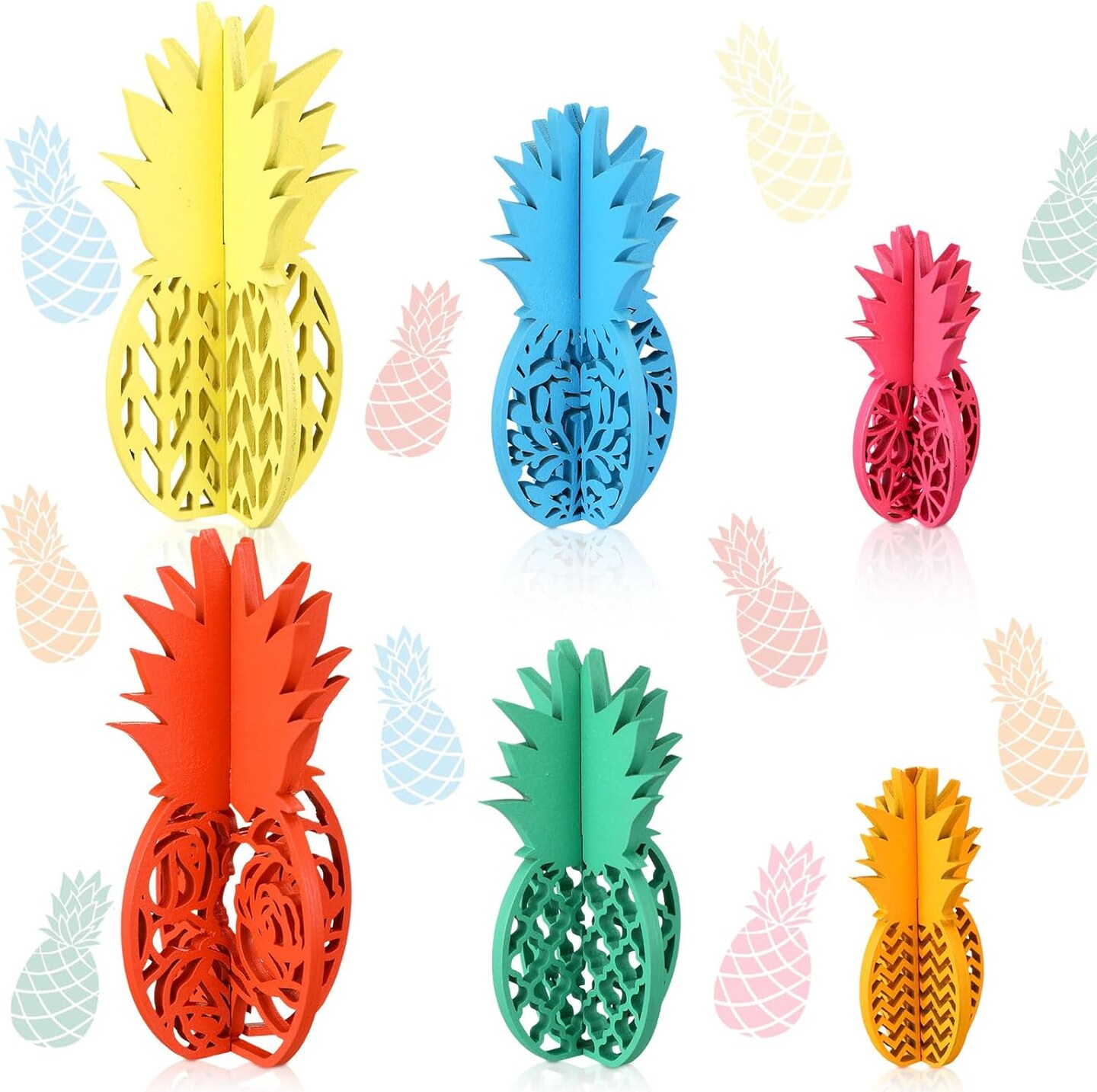 6 Pcs Summer Pineapple Table Decorations Pineapple Centerpiece Wooden Hawaii Luau Party Decorations Pineapple Tabletop Decor 3D Summer Table Sign for Luau Tropical Party Favors, 6 Styles