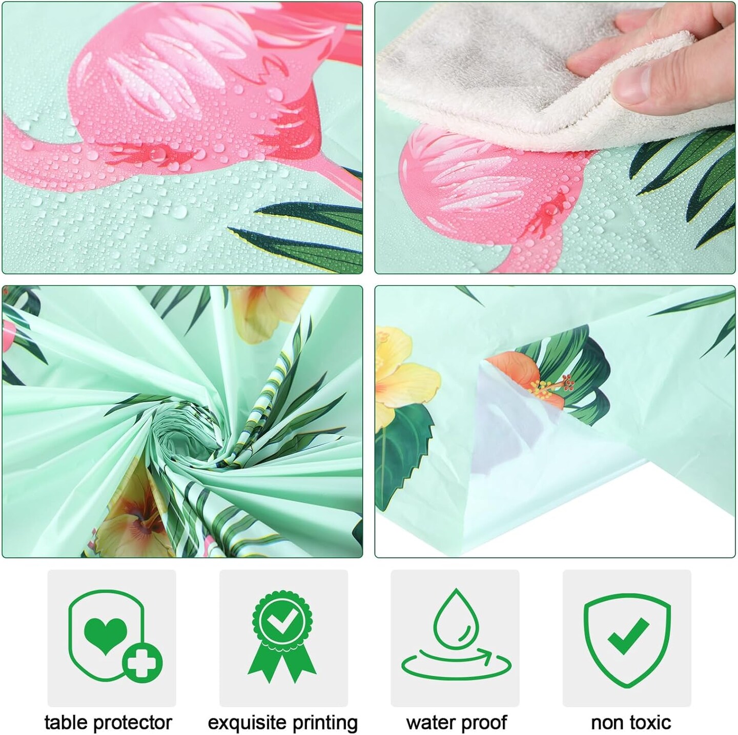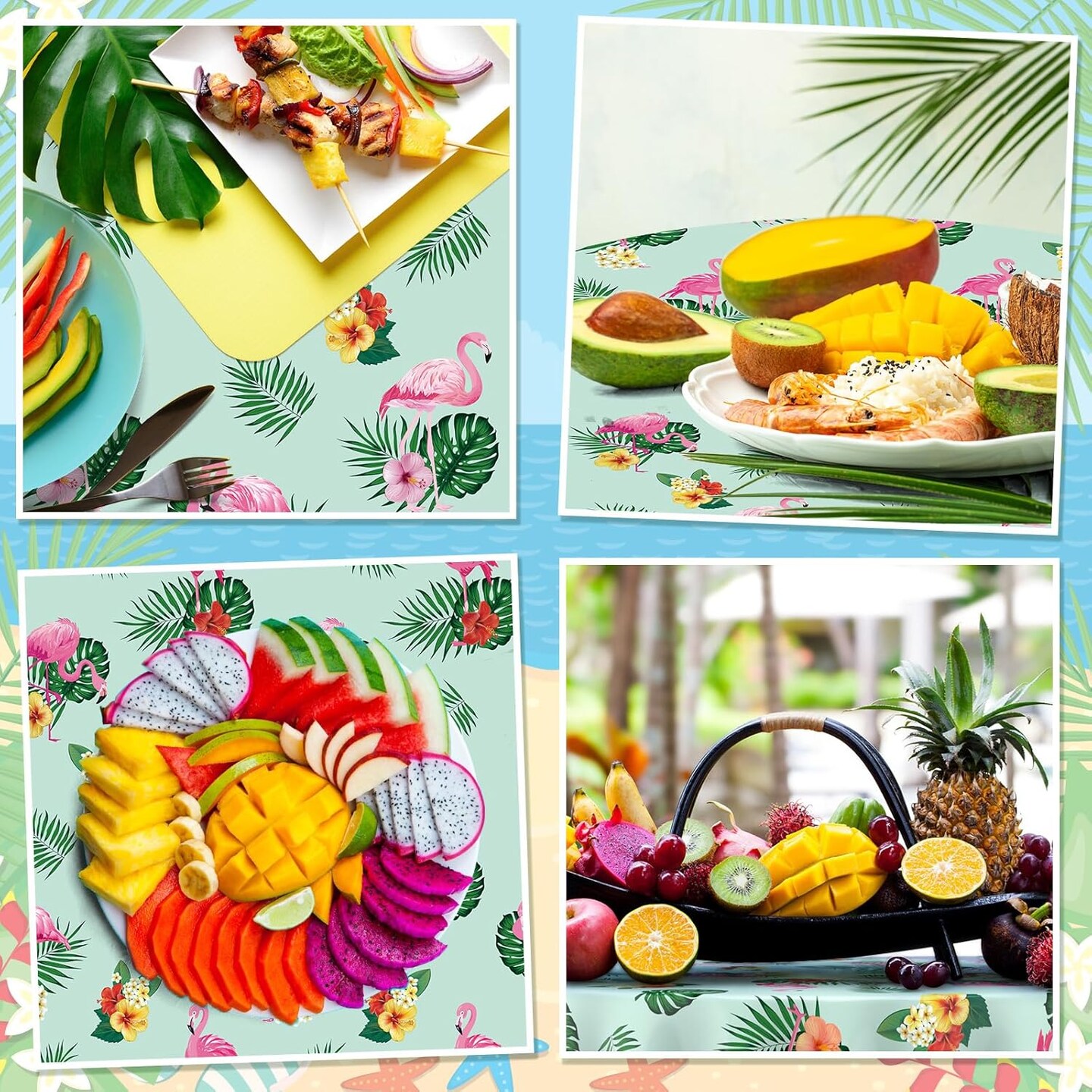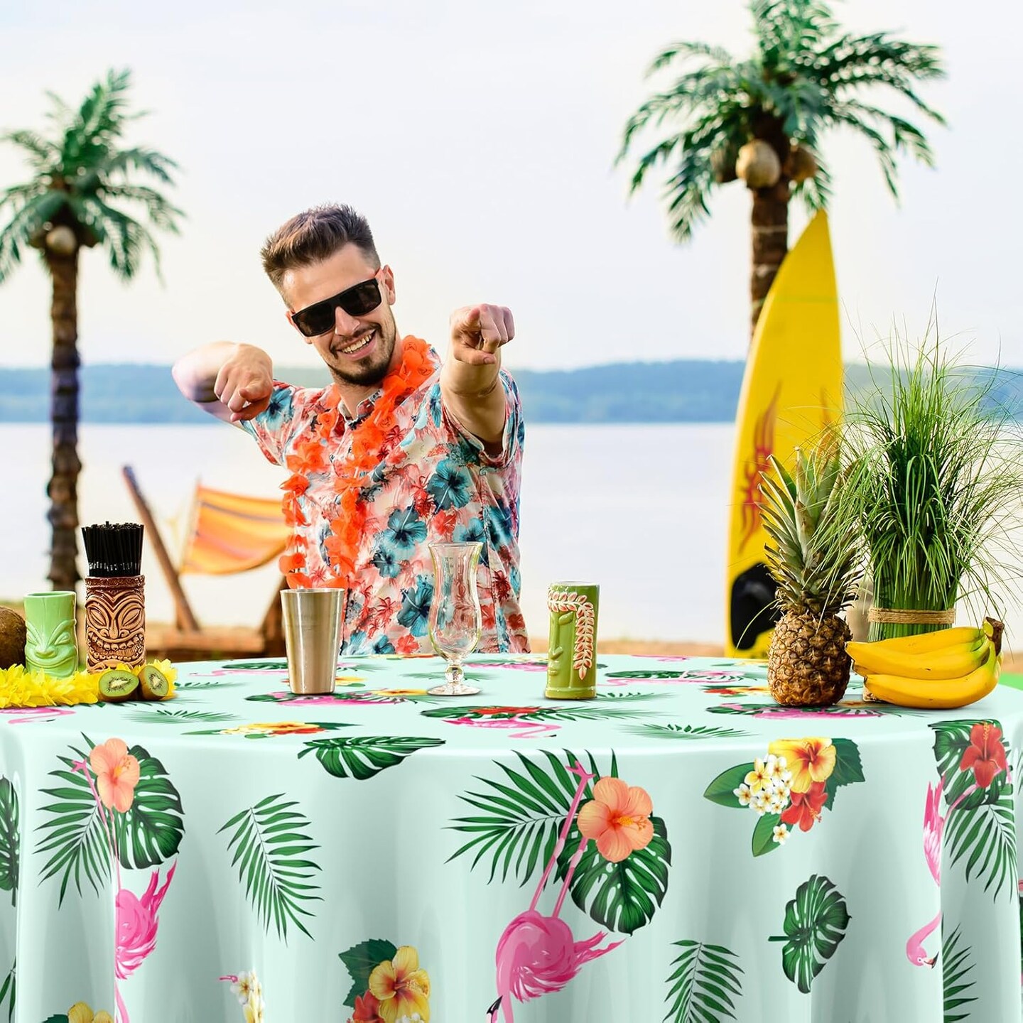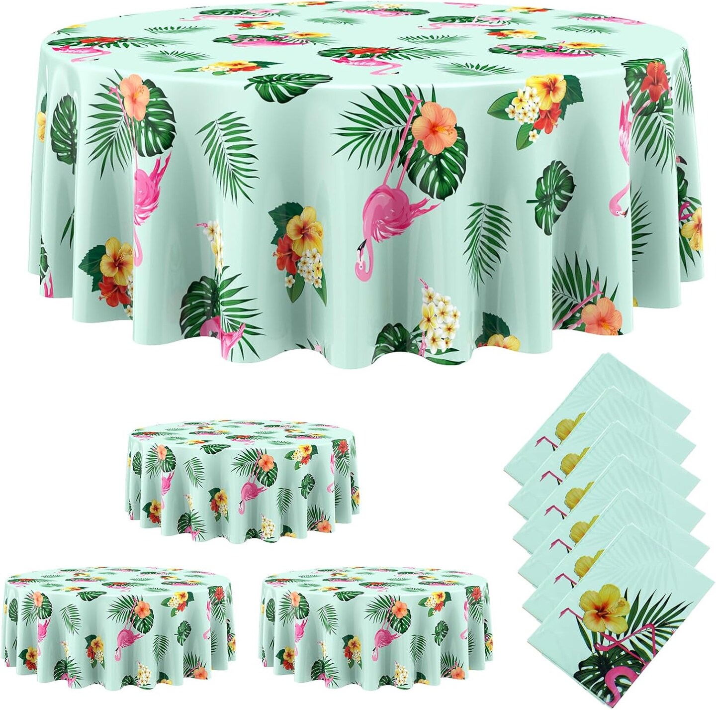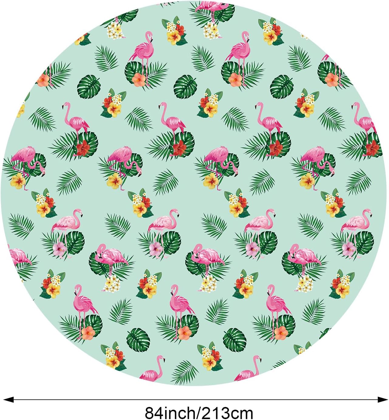 6 PcsFlamingo Hawaiian Tablecloth 84 Inch Luau Tropical Flower Round Table Cloth(Green)